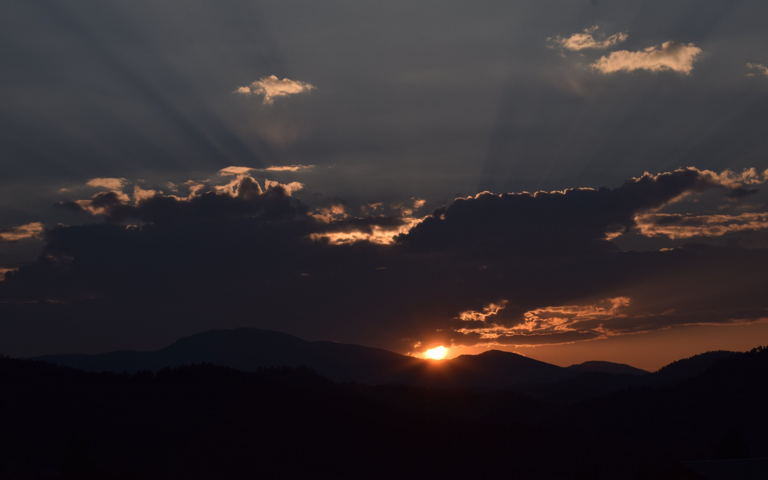 Silhouette of Mountain Under Cloudy Sky - 2560x1600