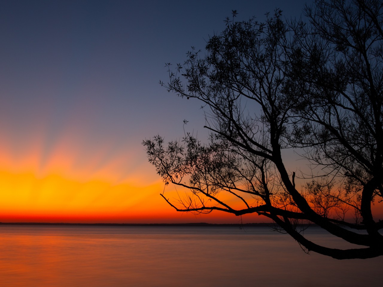 Silhouette of Single Tree and Orange Sunset - 1280x960