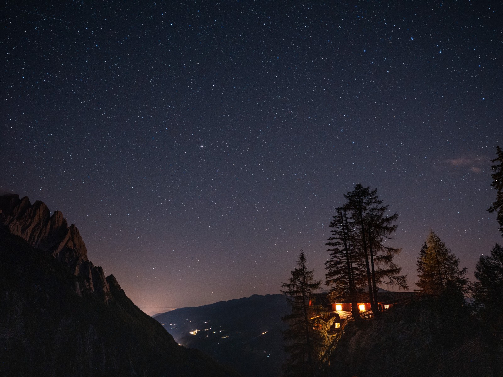 Silhouette of Trees in Forest and Starry Sky - 1600x1200