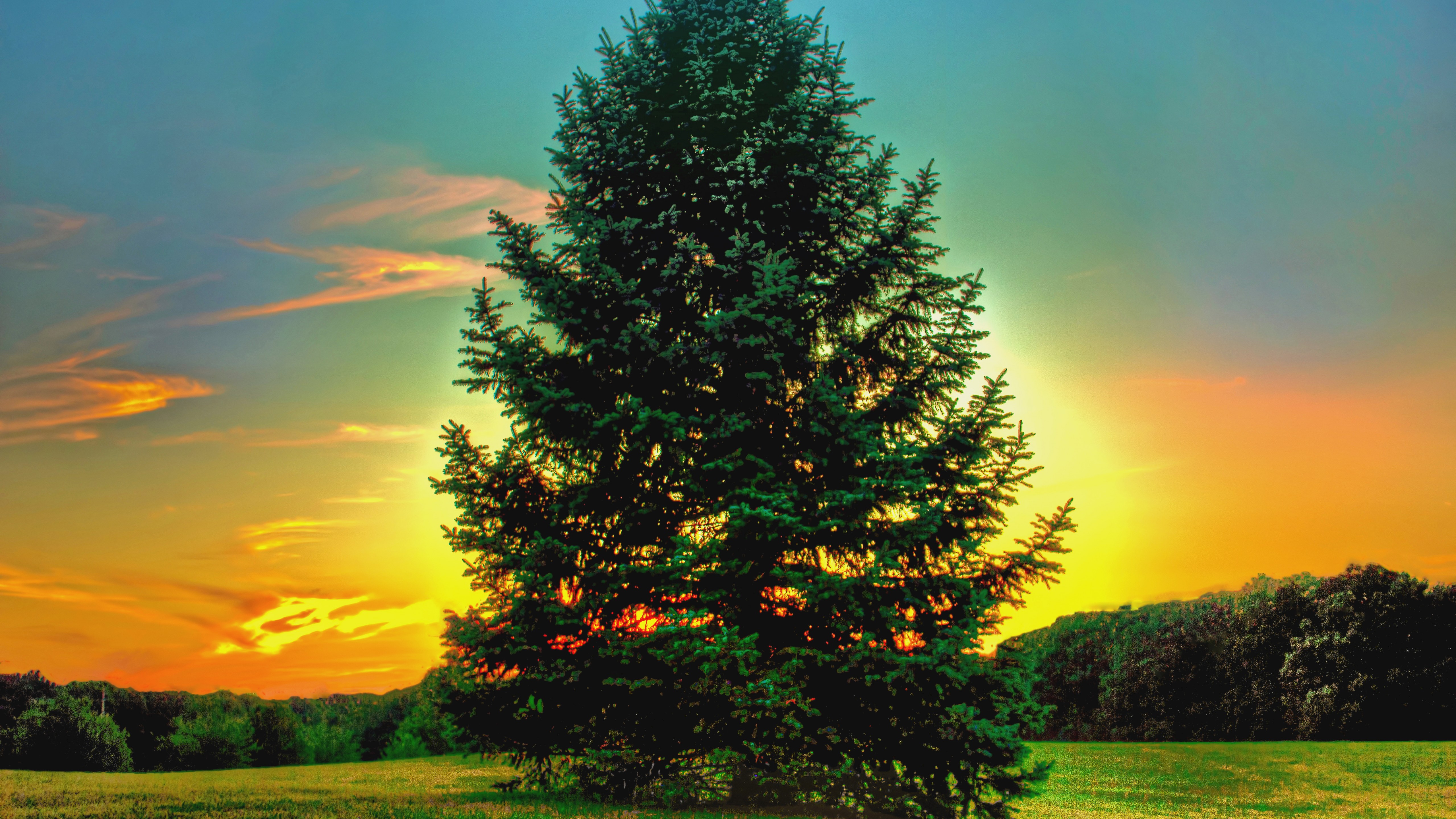 Single Spruce Tree in Green Meadow - 5120x2880 5K UHD +