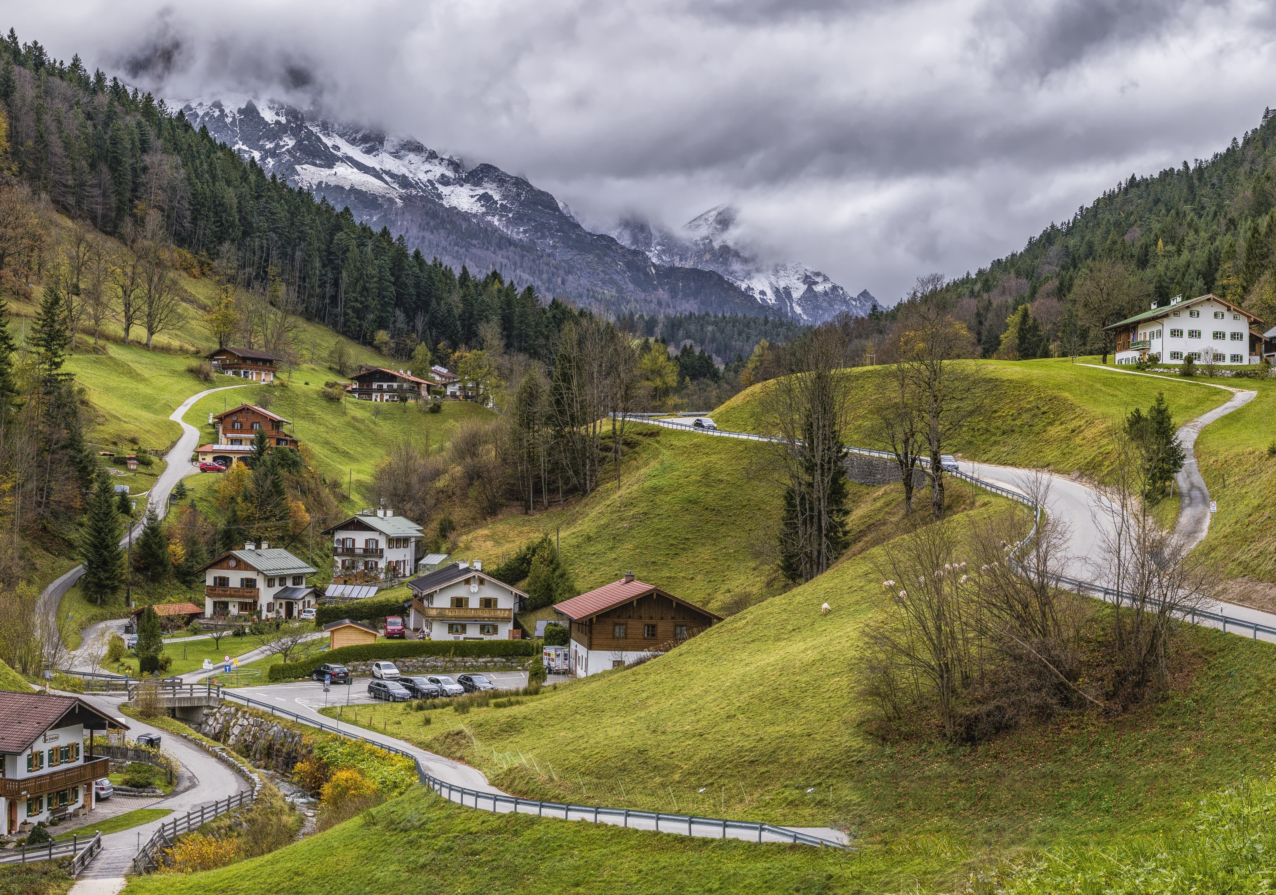 Single Village in Mountain Valley and Clouds - 4277x3000