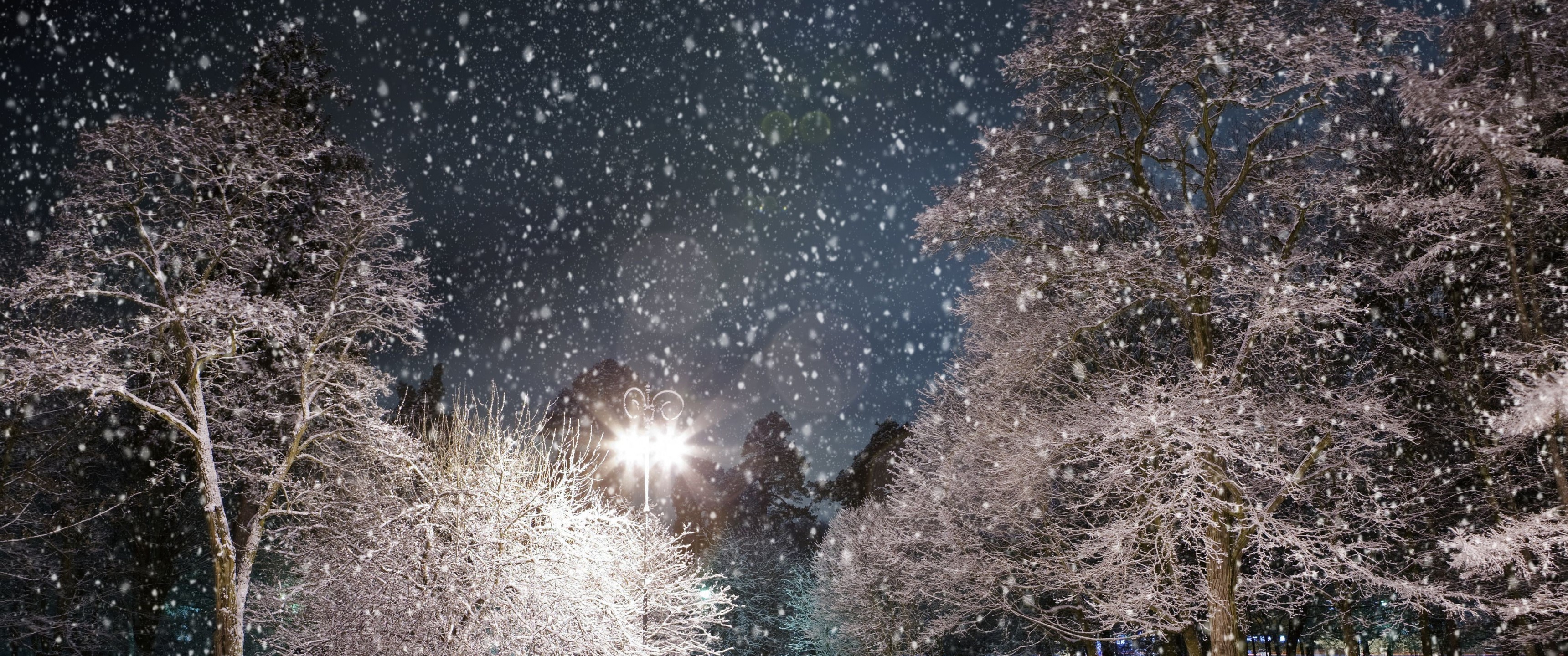 Snowing in City Winter Garden - 3440x1440 Ultra WQHD