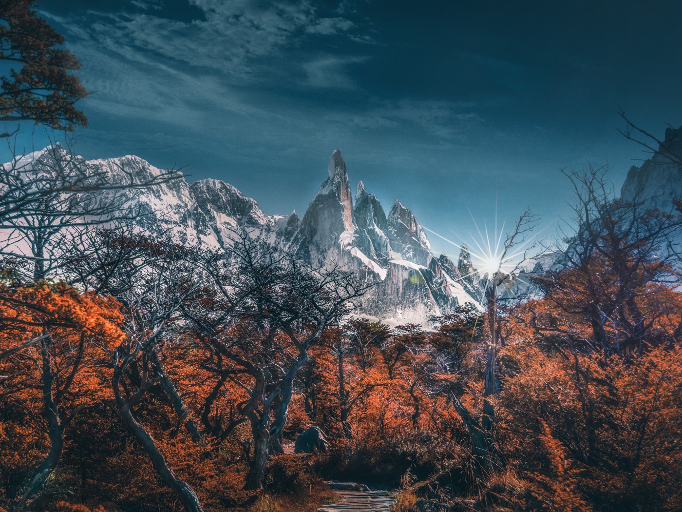 Snowy Mountains and Autumn Forest - 1400x1050