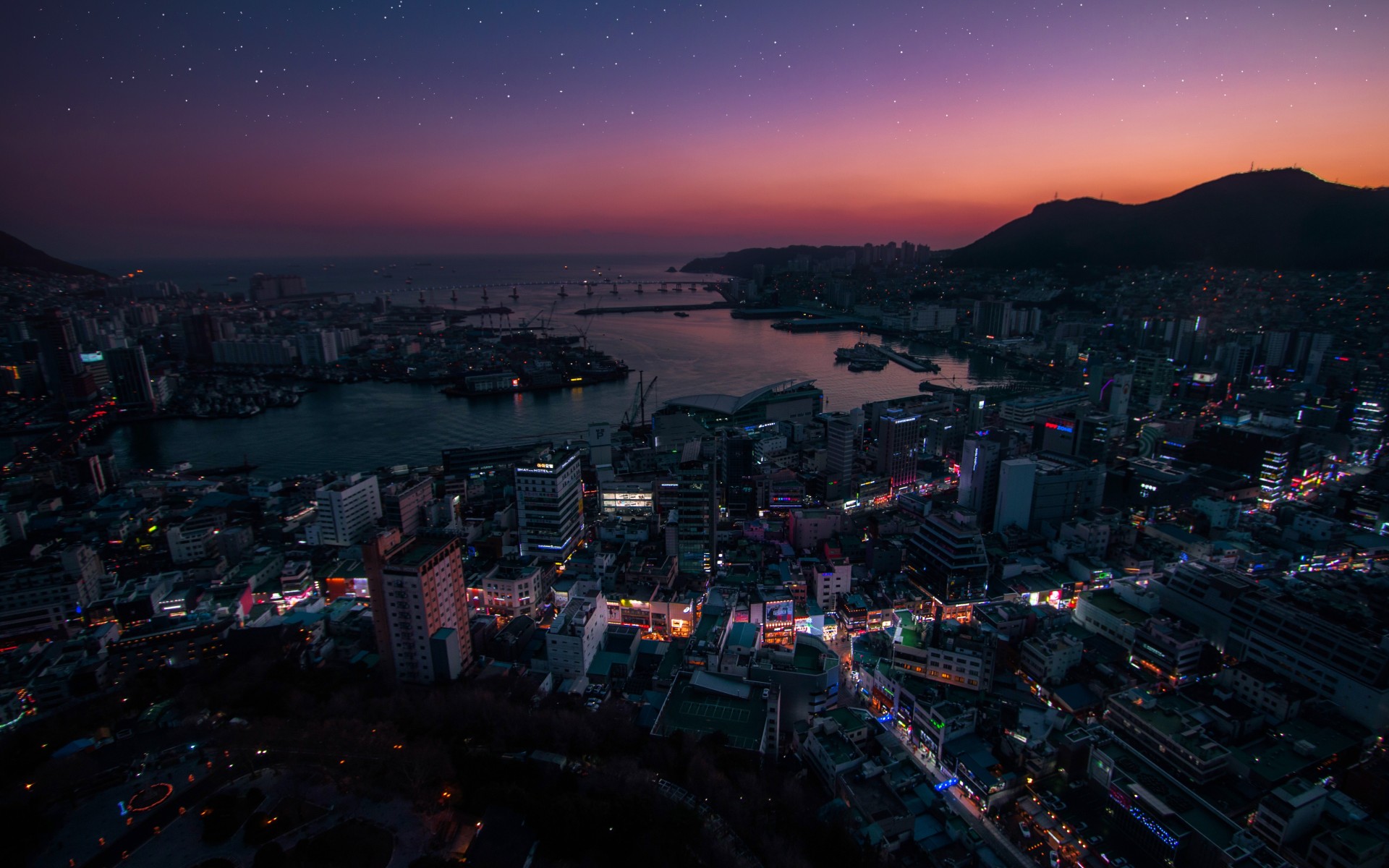 South Korea Night Stars Cityscape - 1920x1200