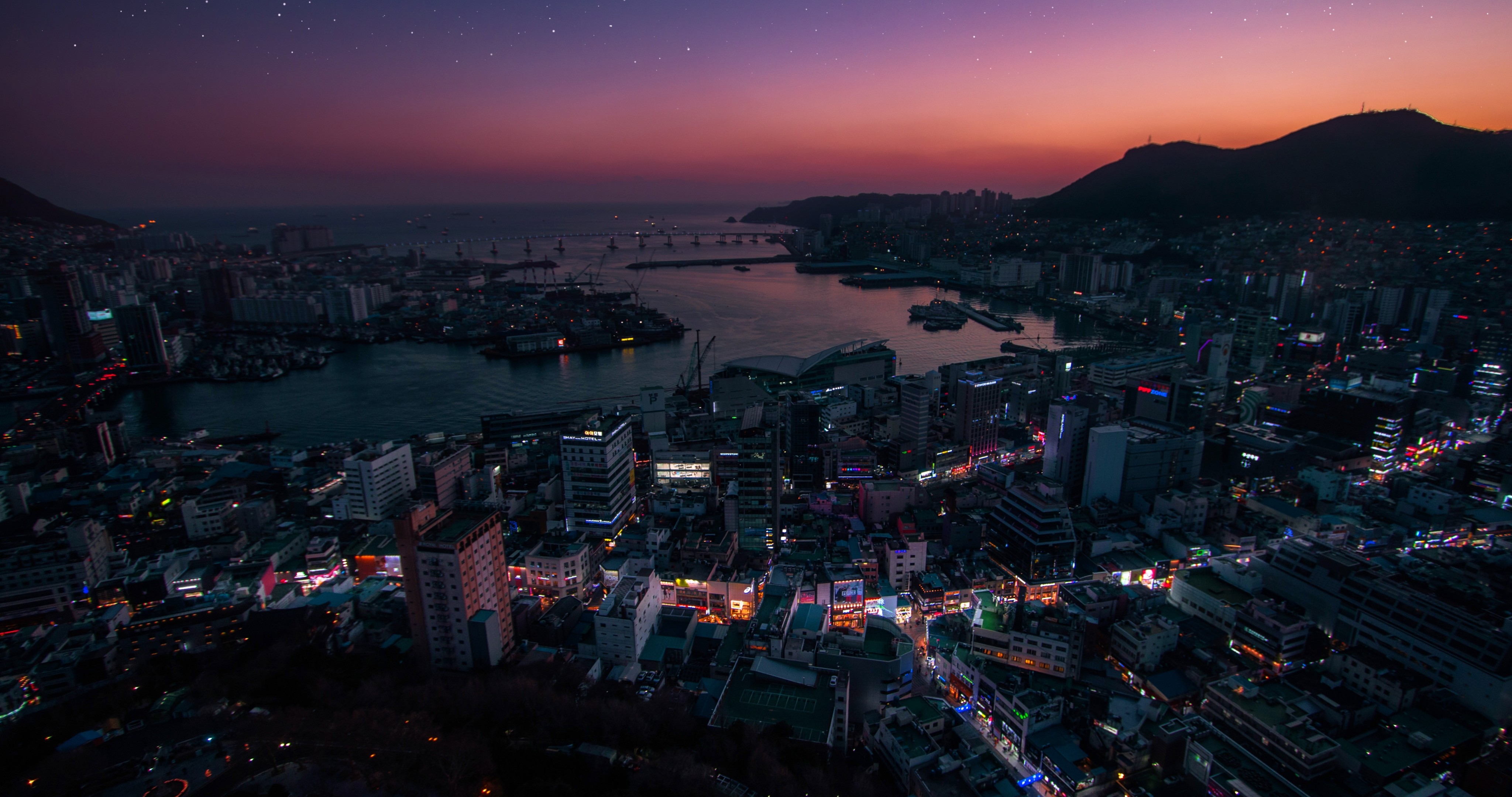 South Korea Night Stars Cityscape - 4096x2160 4K