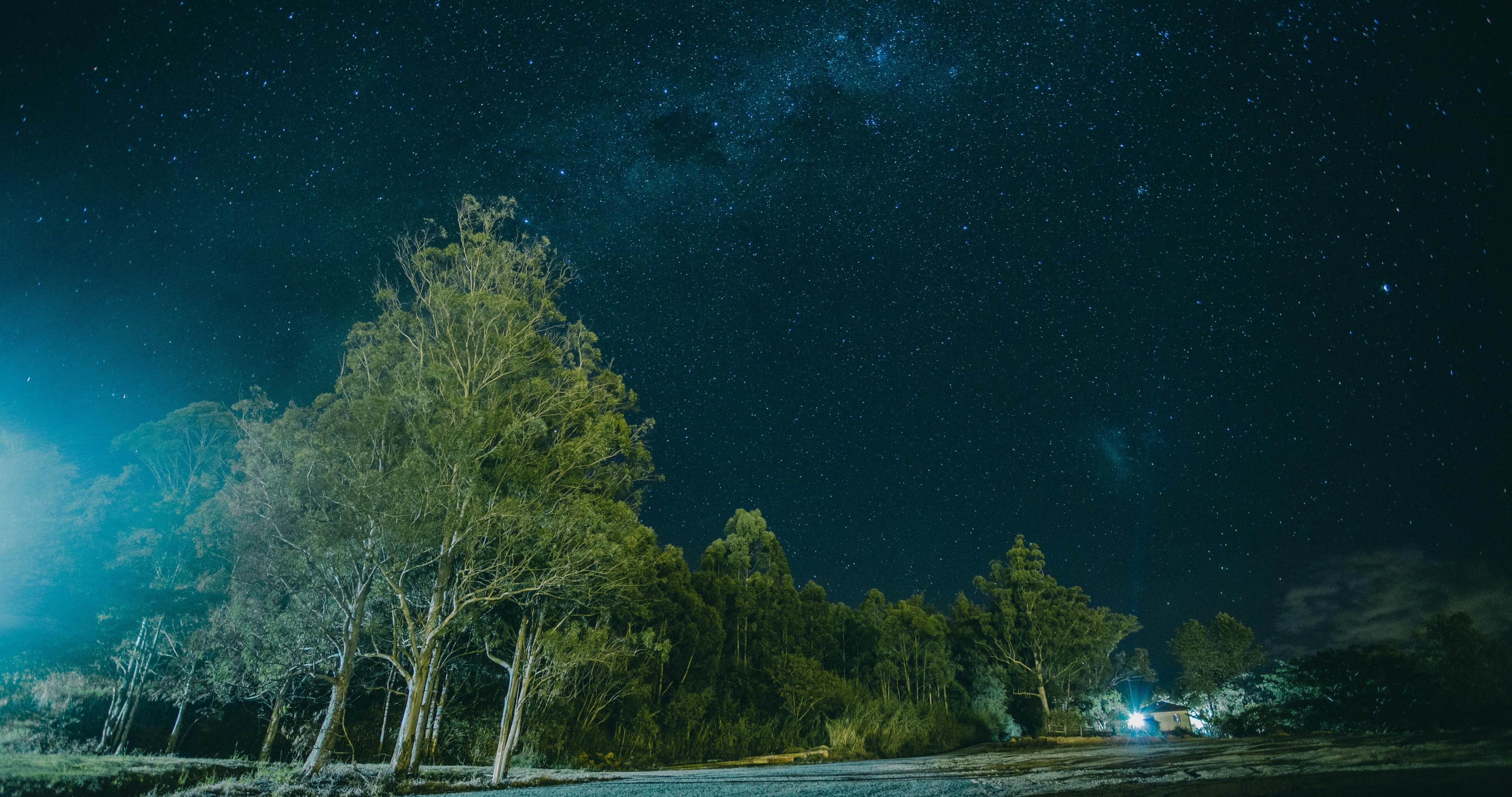 Starry Night Sky and Old Green Forest with House - 4096x2160 4K