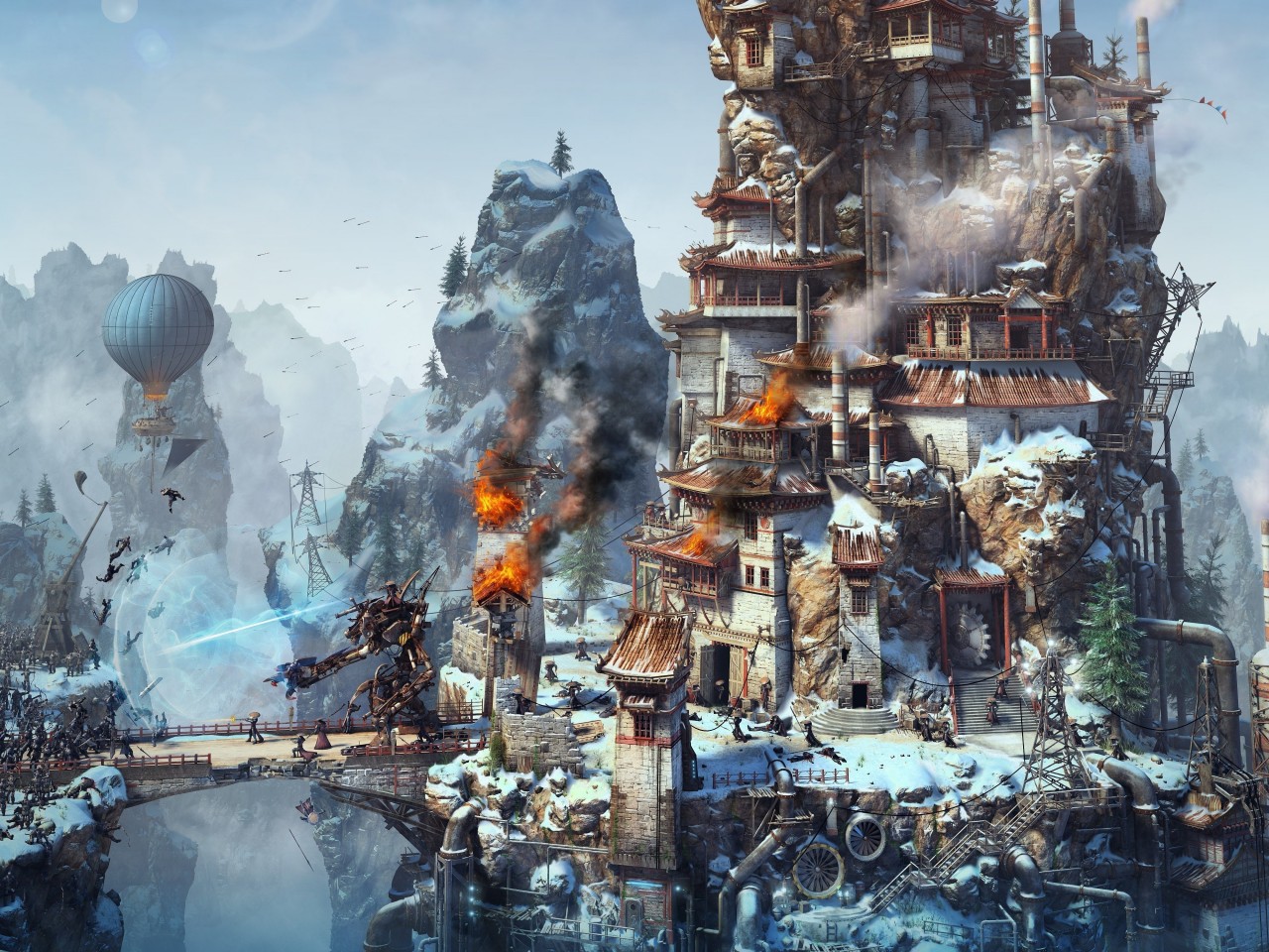 Steampunk Old Fantasy Town and Fire - 1280x960