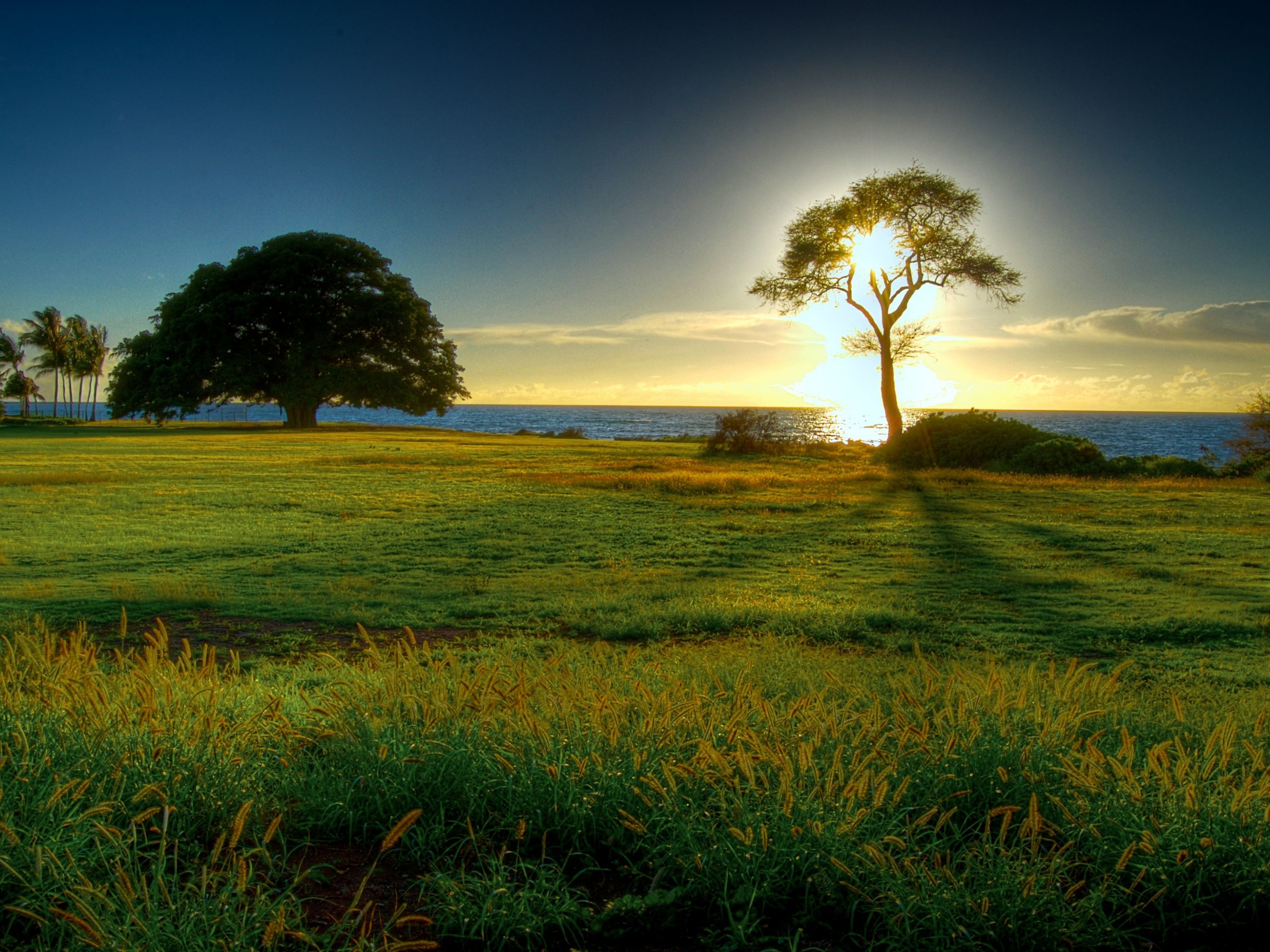 Sunrise in Beautiful Green Meadow - 3200x2400