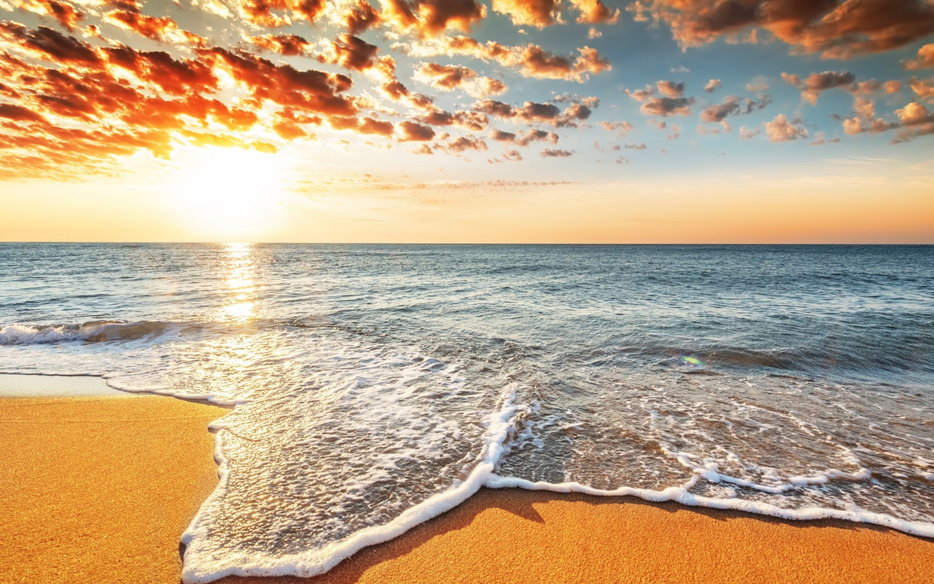 Sunrise on Golden Beach and Waves - 1920x1200