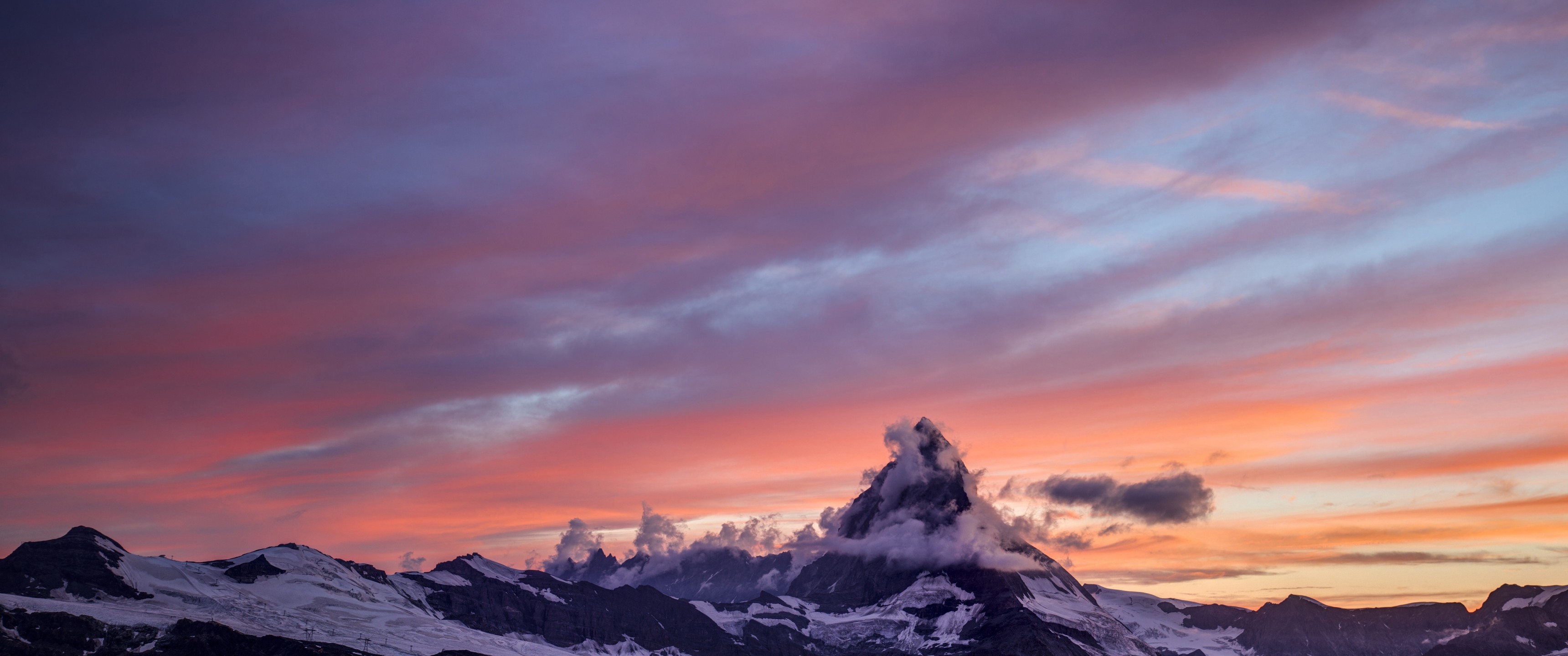 Sunrise Winter Twilight Mountain Matterhorn - 3440x1440 Ultra WQHD