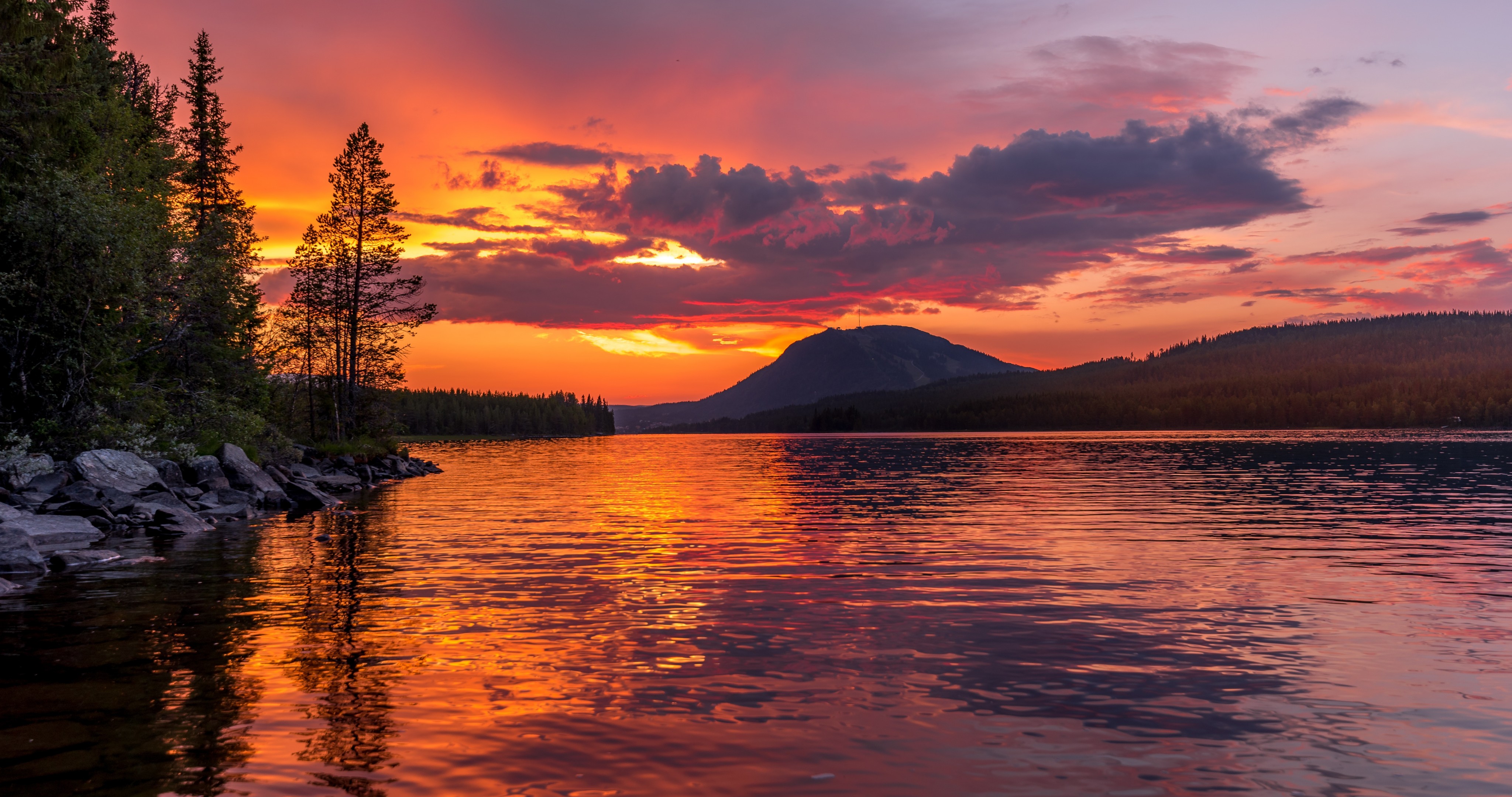 Sunrises and Sunsets on Mountains Lake Scenery - 4096x2160 4K