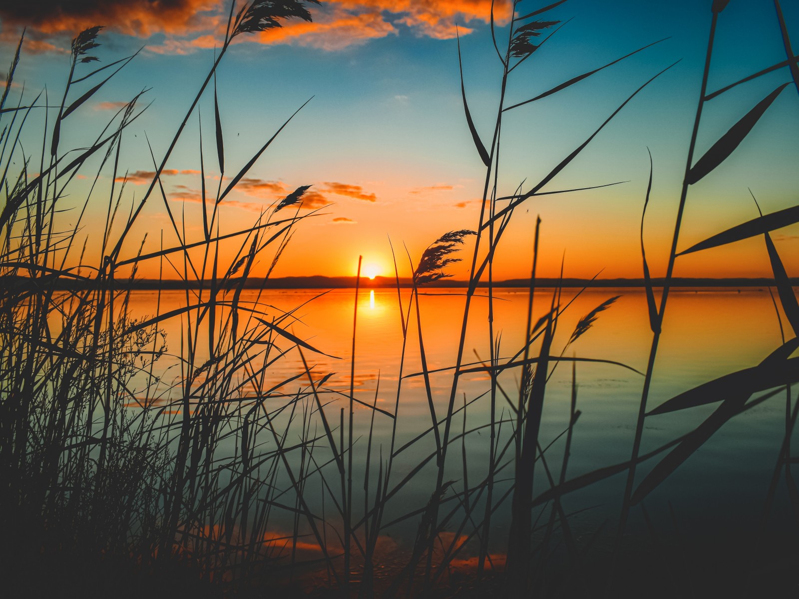 Sunset and Reeds on Shore - 1600x1200