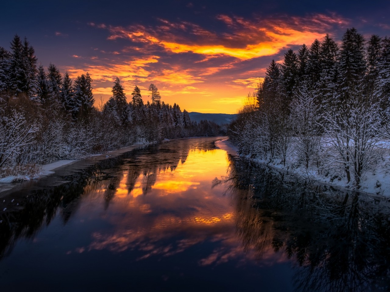 Sunset and Winter River - 1280x960