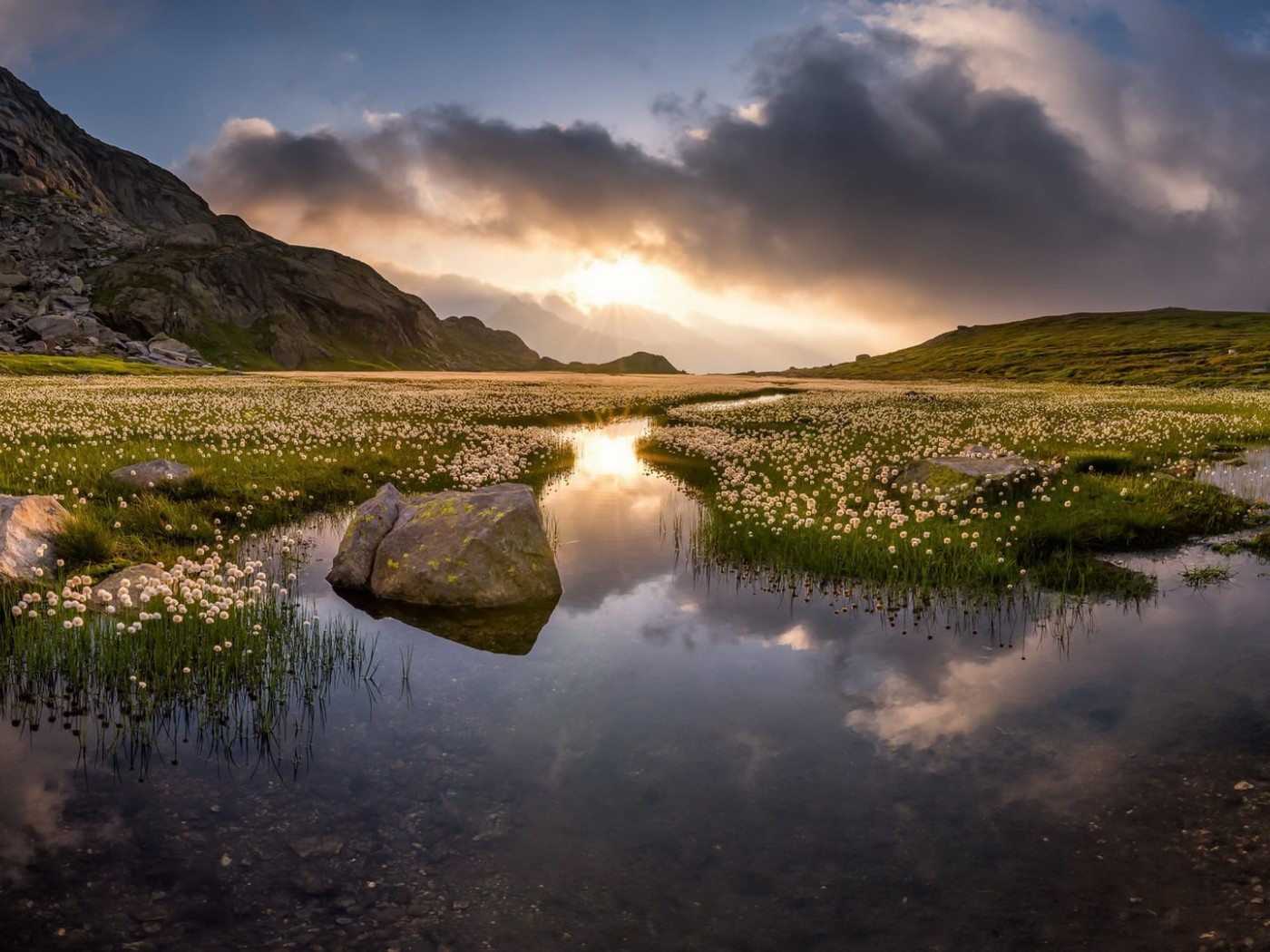 Swamp with Many White Flowers and Good Day - 1400x1050