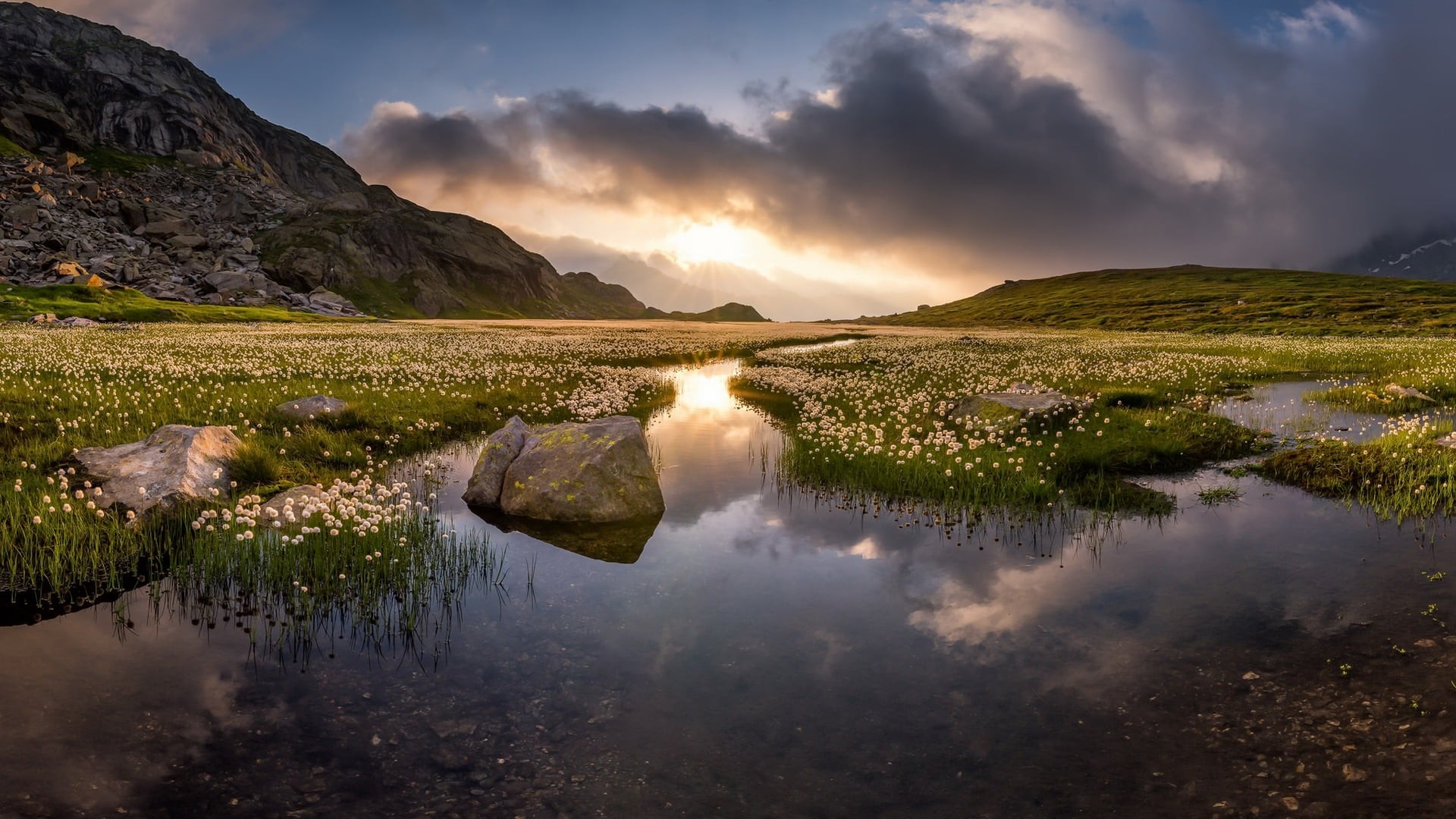 Swamp with Many White Flowers and Good Day - 1920x1080 (1080p)