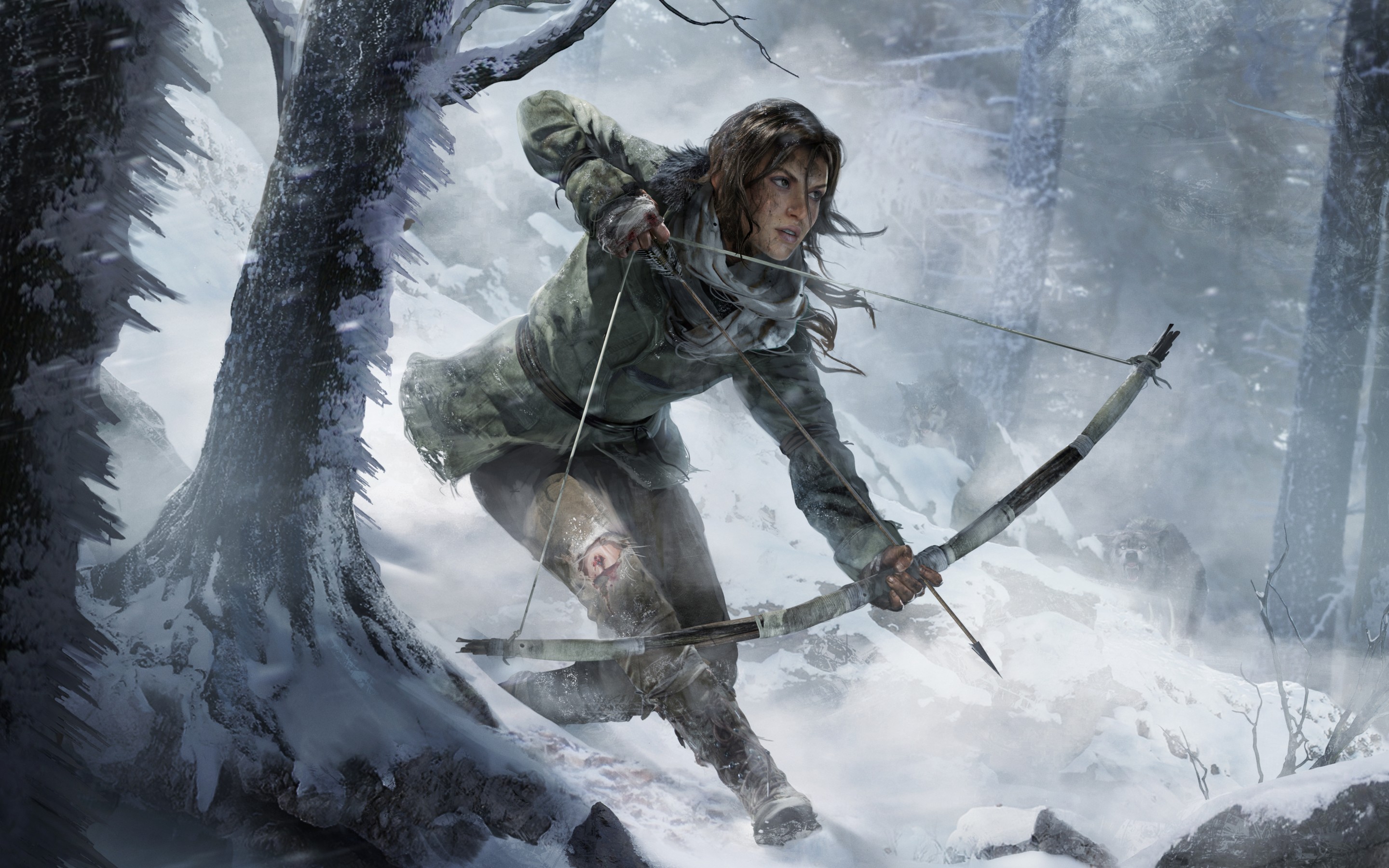 Tomb Raider Lara Croft Beautiful girl in winter forest - 2880x1800
