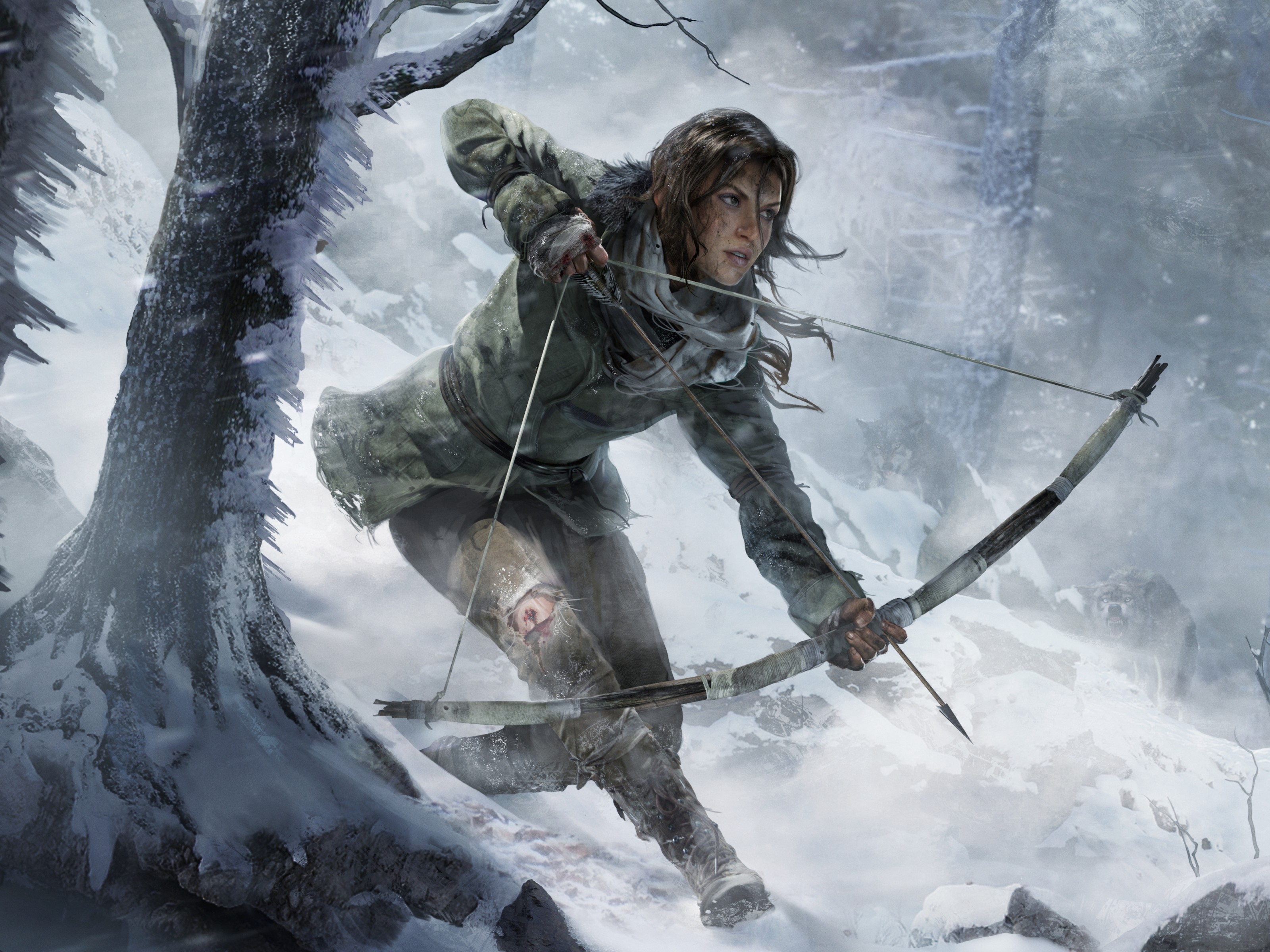 Tomb Raider Lara Croft Beautiful girl in winter forest - 3200x2400