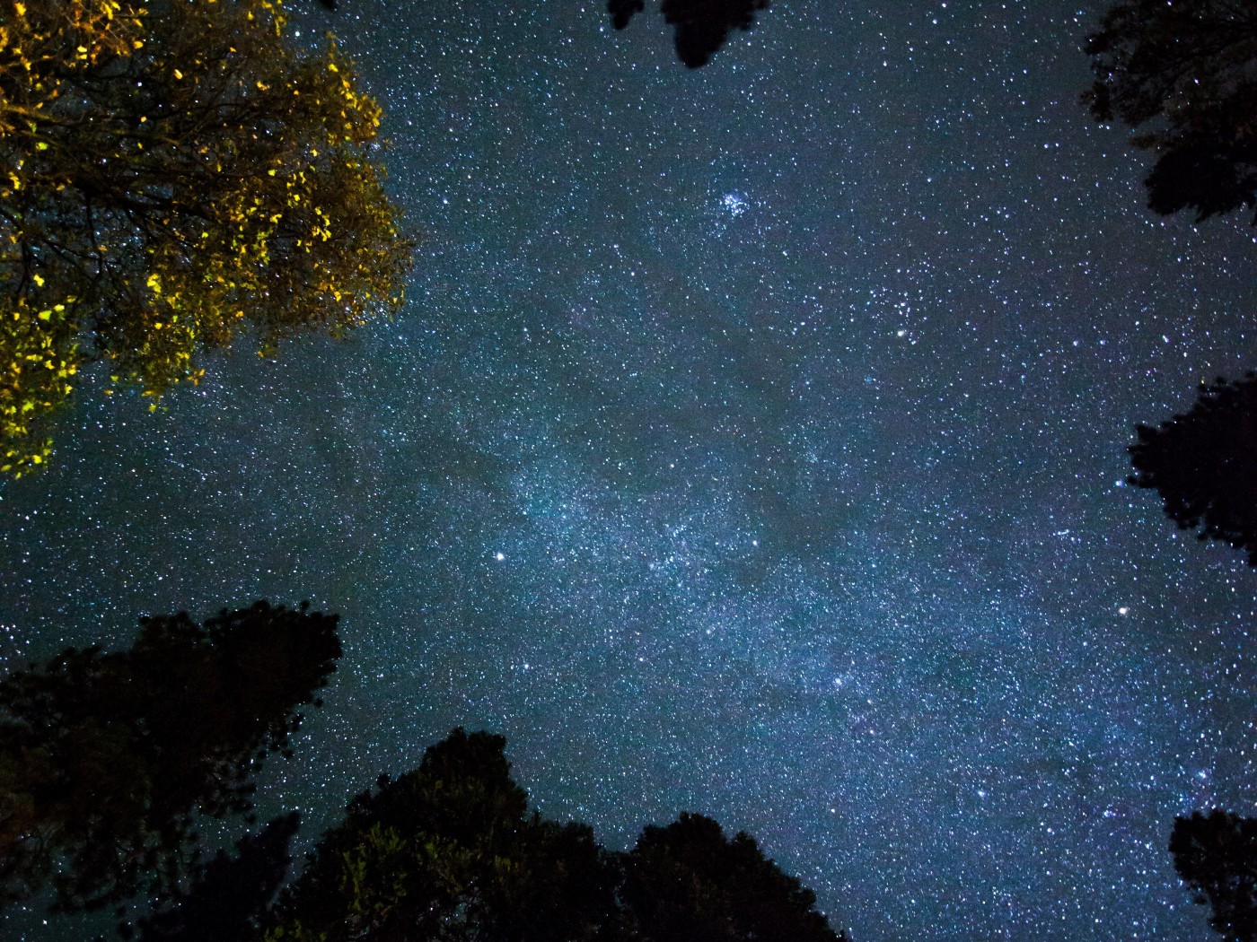 Tops of Trees in Night Forest and Beautiful Sky - 1400x1050