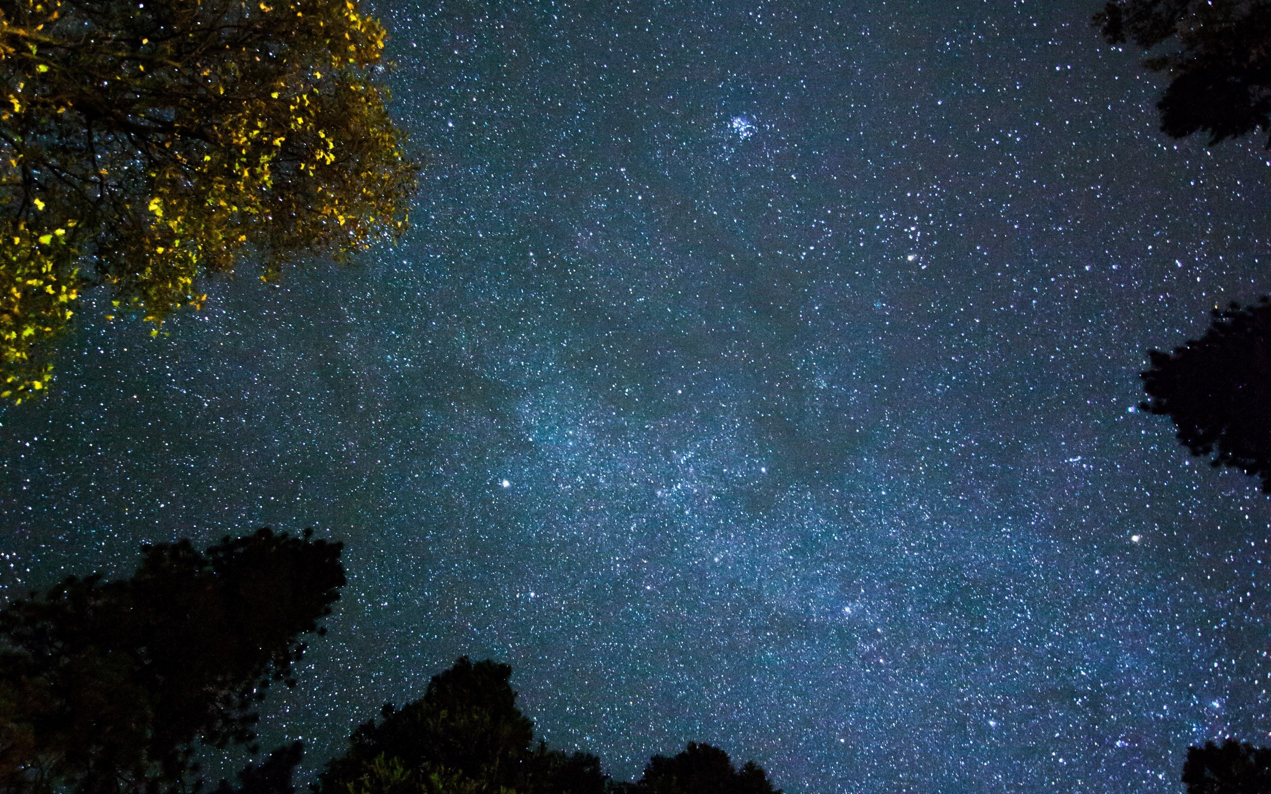 Tops of Trees in Night Forest and Beautiful Sky - 2560x1600