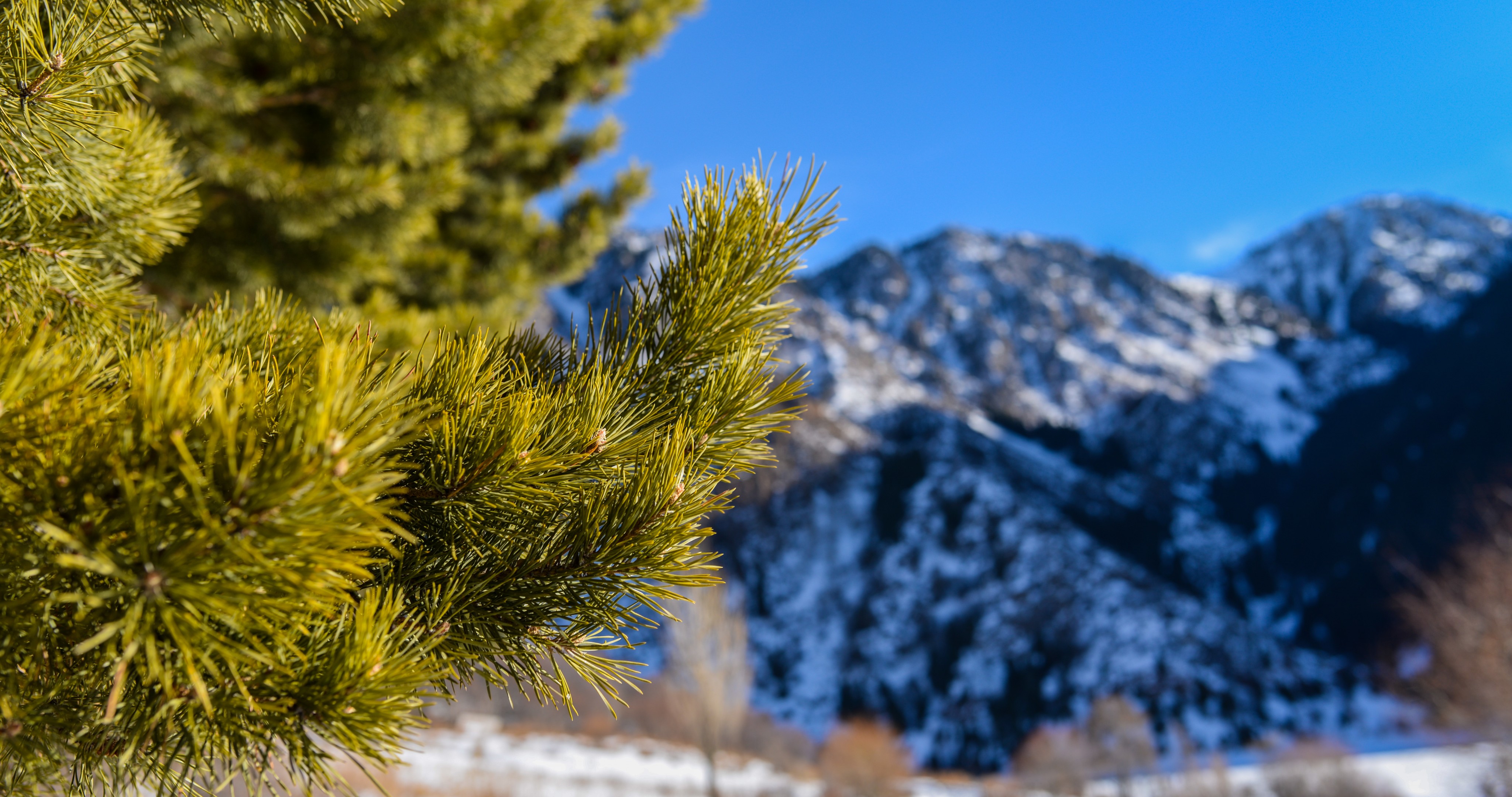 Tree Pins Closeup with Background Mountain - 4096x2160 4K