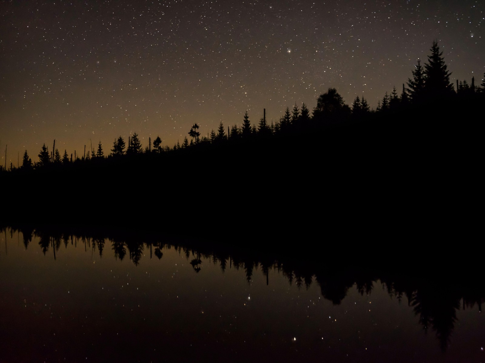 Trees Around Lake and Beautiful Starry Sky - 1600x1200