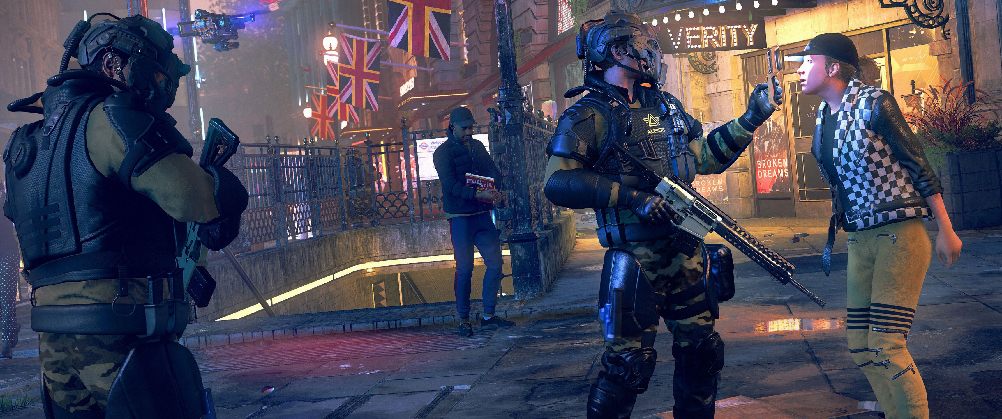 Watch Dogs Legion Soldiers on Street - 3440x1440 Ultra WQHD