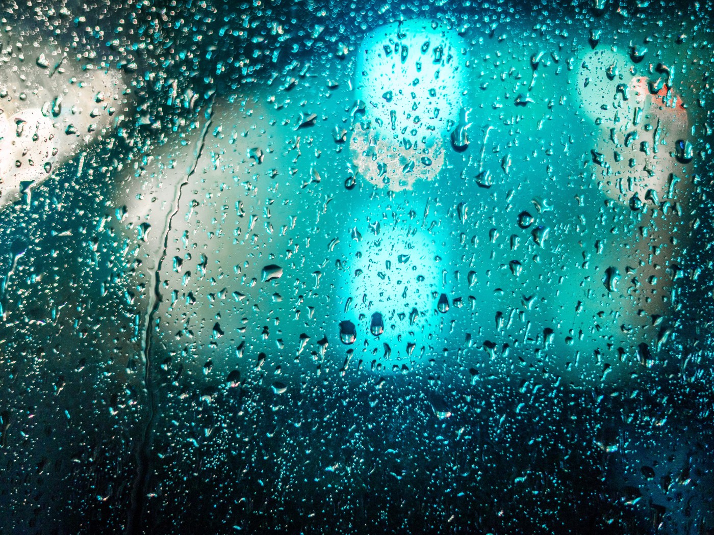 Water Drops on Car Glass and Blue Light - 1400x1050