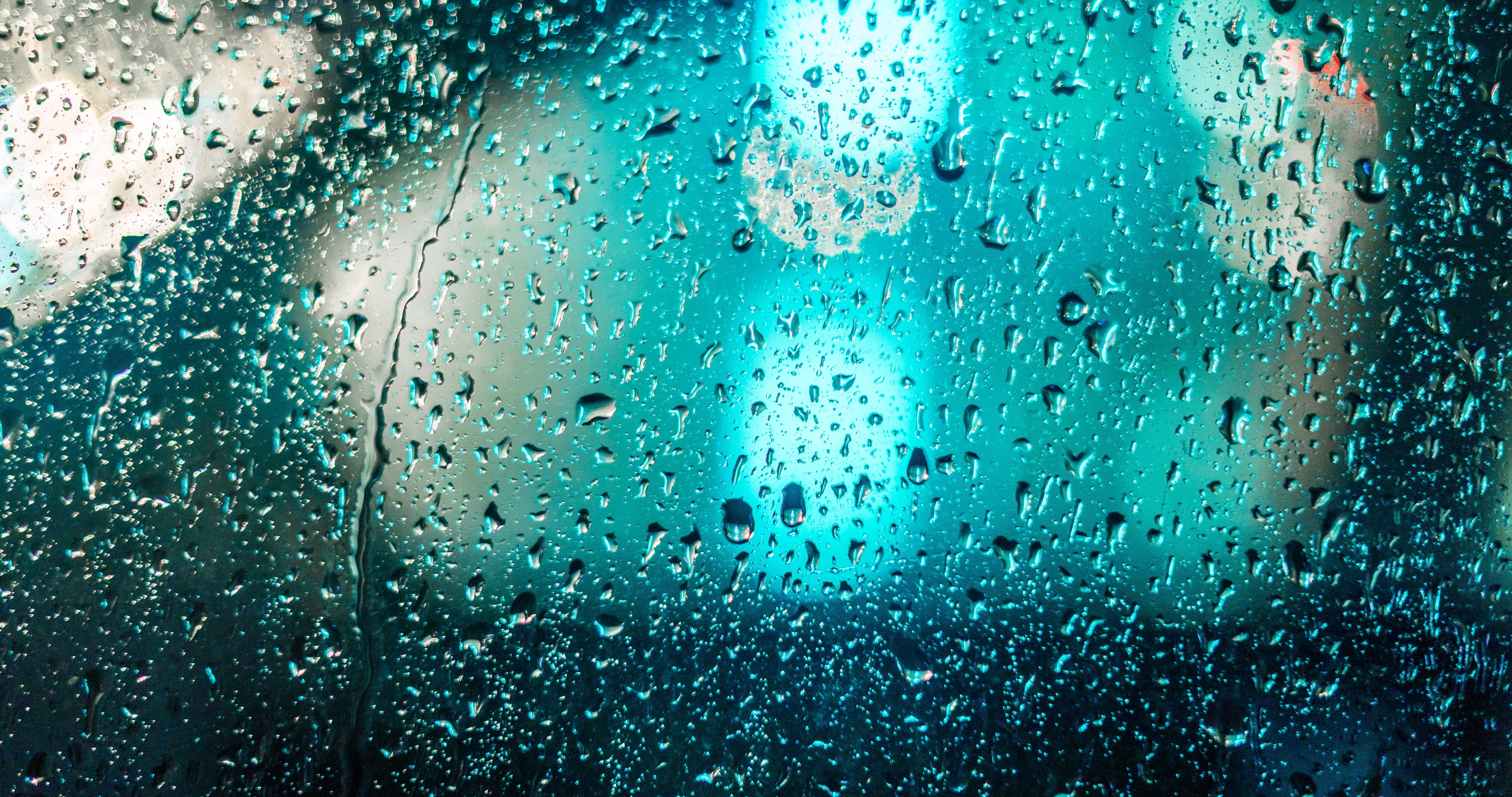 Water Drops on Car Glass and Blue Light - 4096x2160 4K