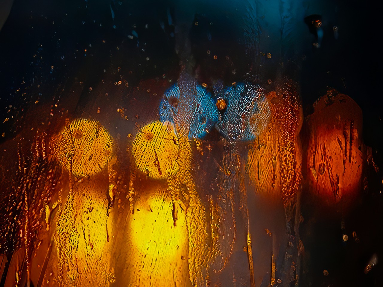 Water Drops on Glass with Orange and Blue Lights - 1280x960