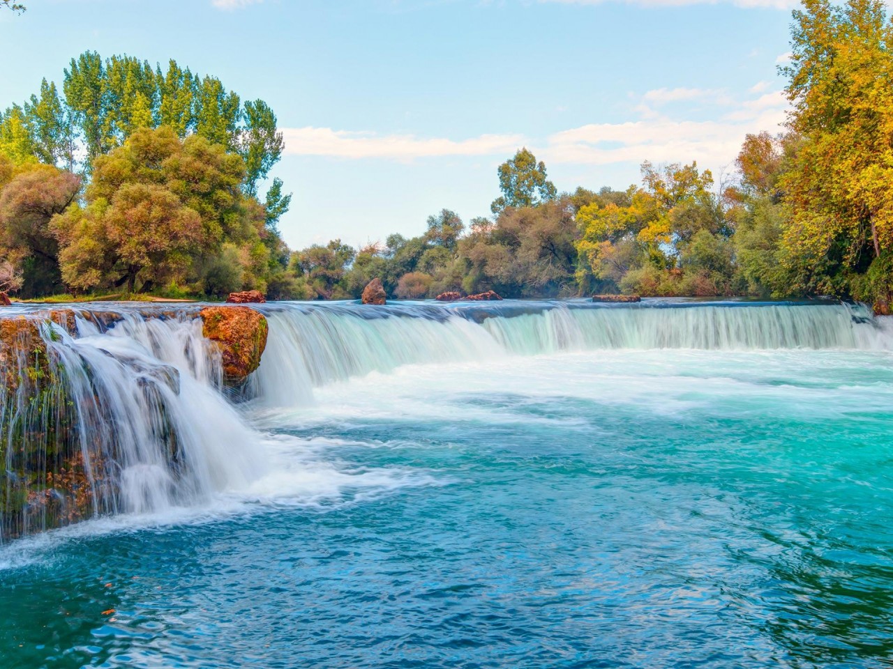 Waterfall Pouring on River Surrounded by Green Trees - 1280x960