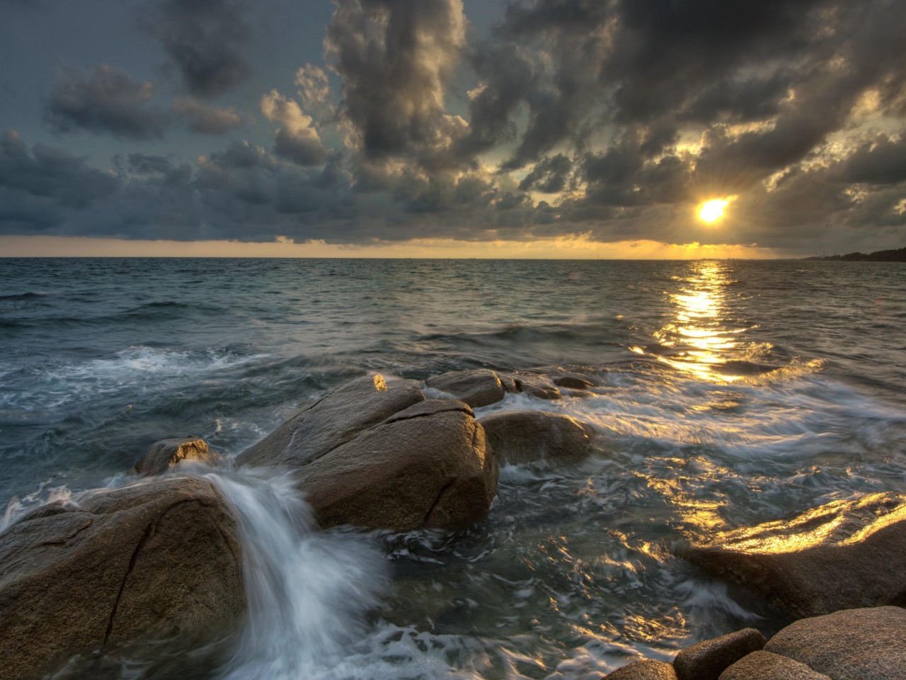 Waves and sunset beach - 1280x960