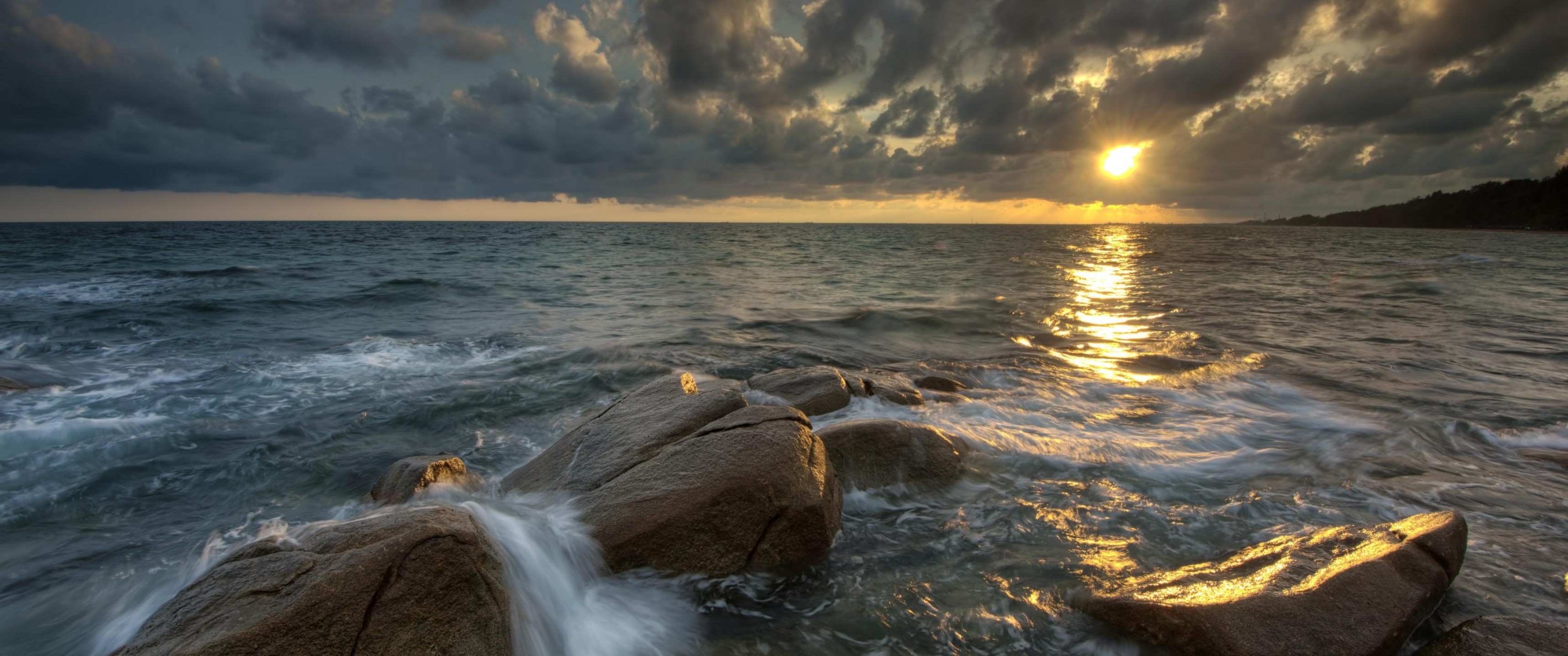 Waves and sunset beach - 3440x1440 Ultra WQHD