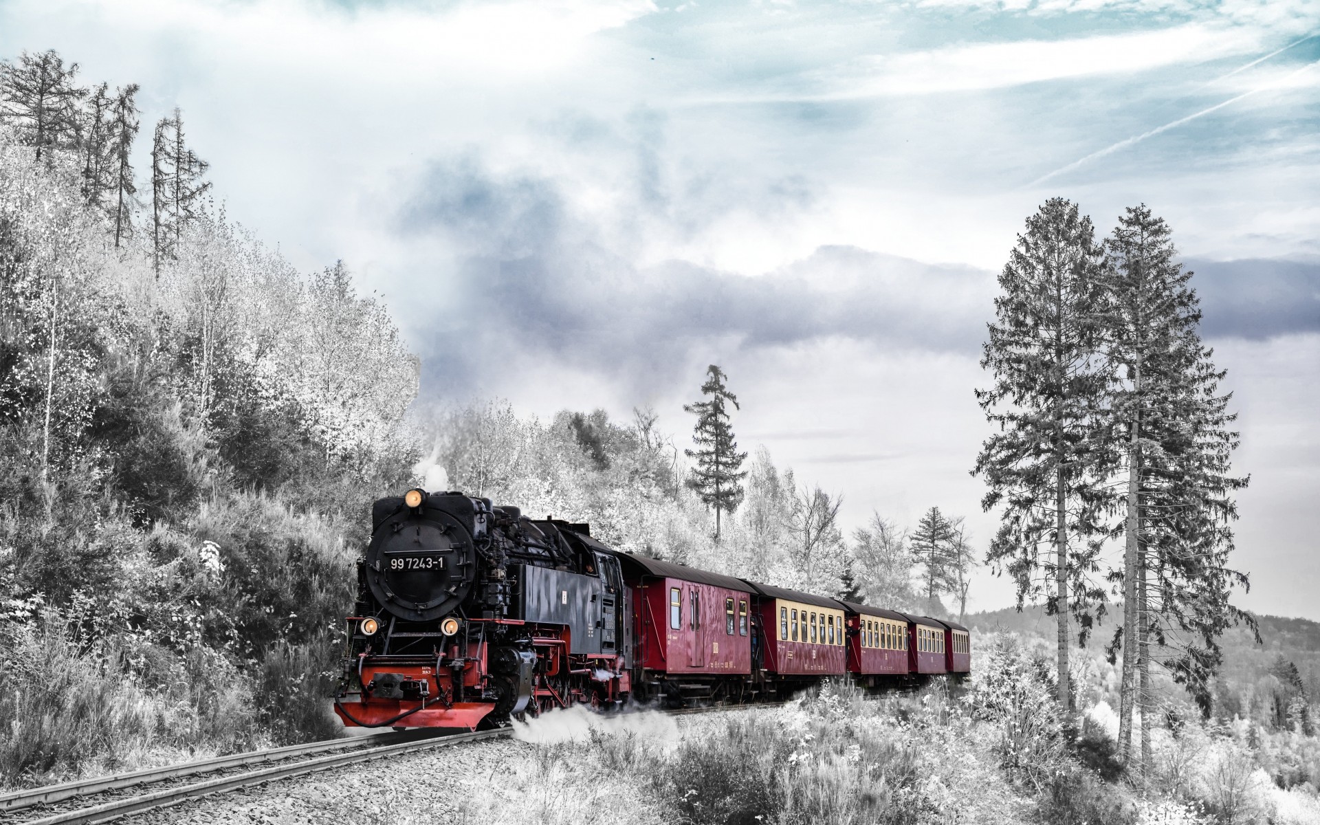 Winter Forest and Old Retro Train - 1920x1200