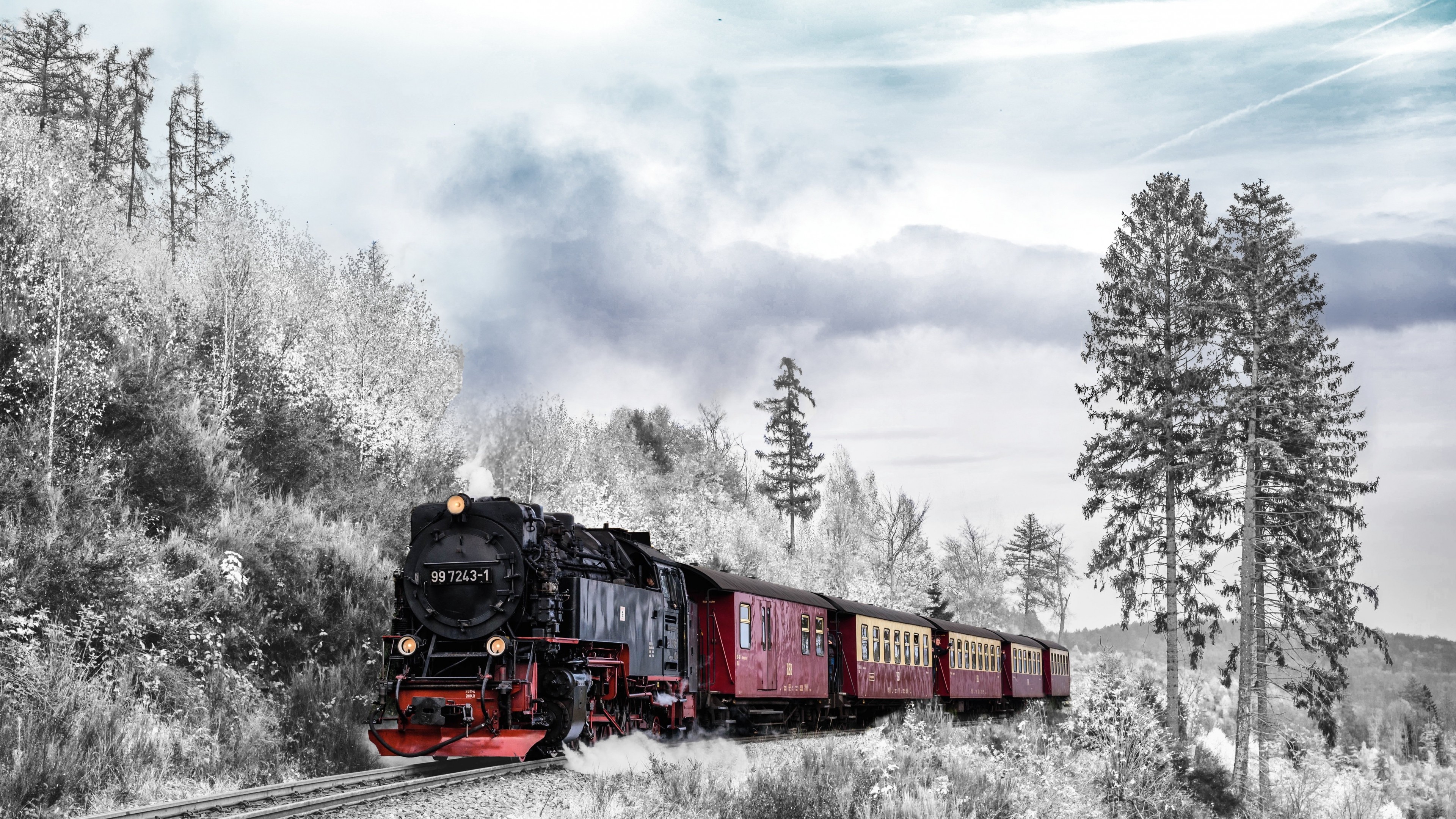 Winter Forest and Old Retro Train - 3840x2160 4K UHD (UltraHD)