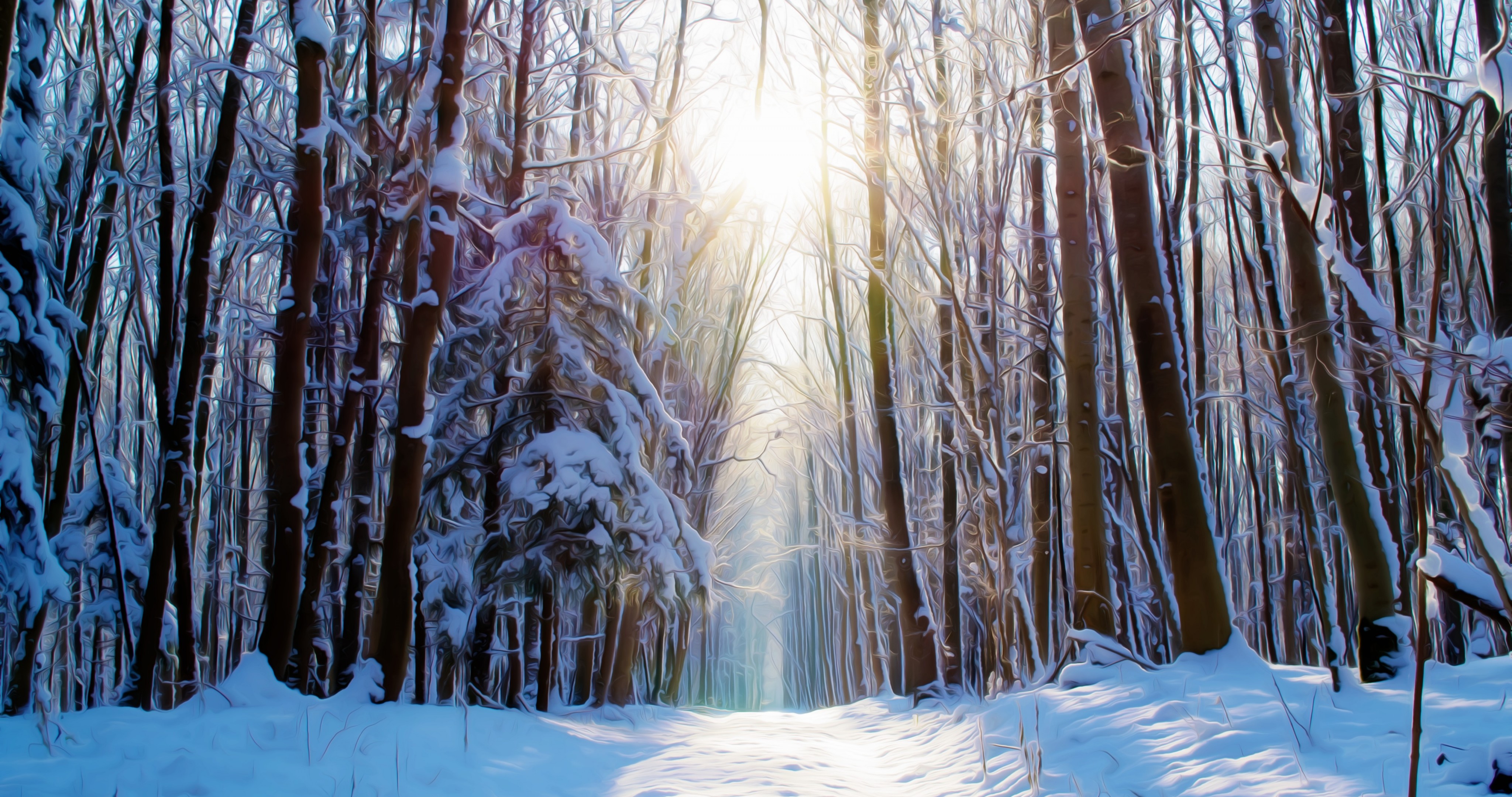Winter Forest Road and Sunlight - 4096x2160 4K
