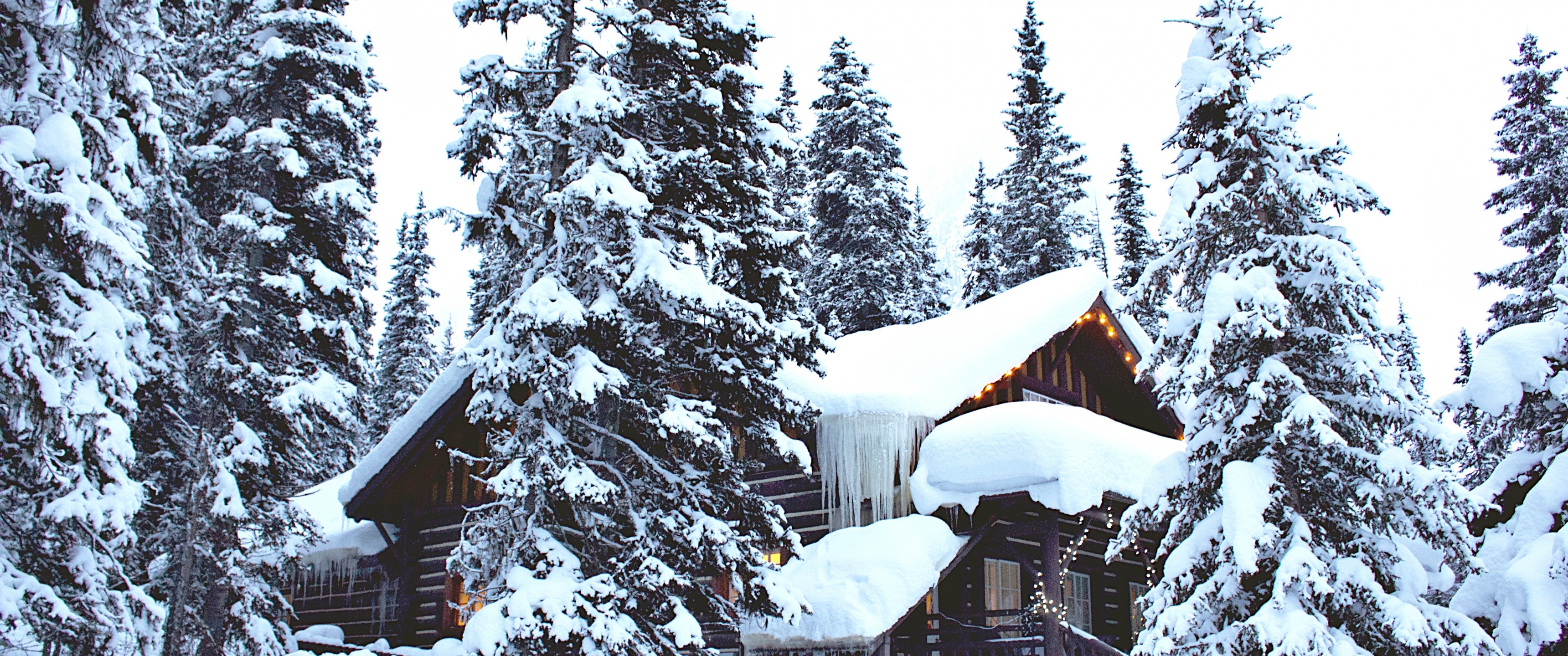 Winter Snow Covered Trees and House - 3440x1440 Ultra WQHD