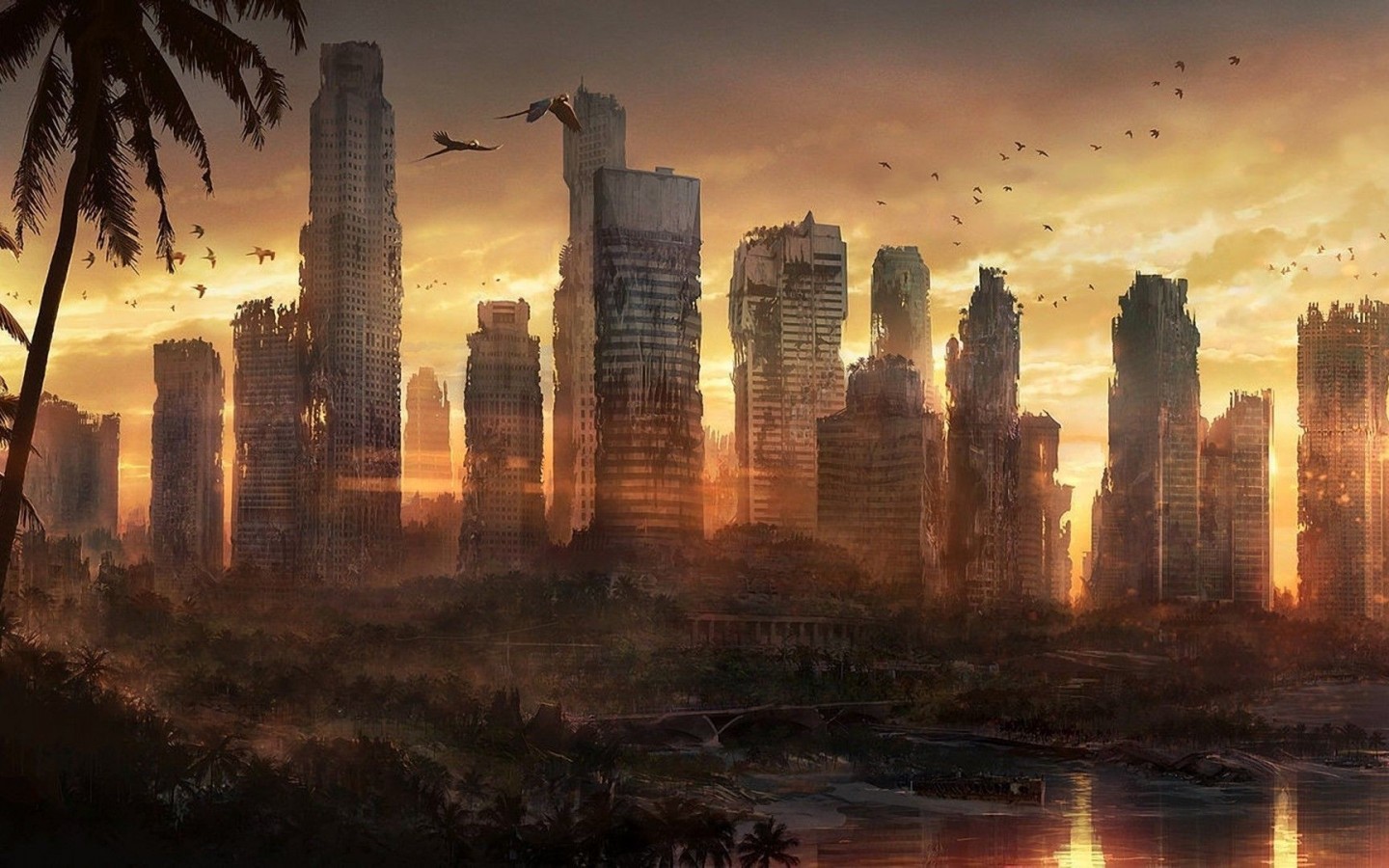 Wonderful Dead big city and ruins on the beach - 1440x900