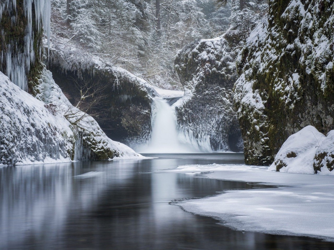 Wonderful Frozen Waterfall in Forest - 1280x960