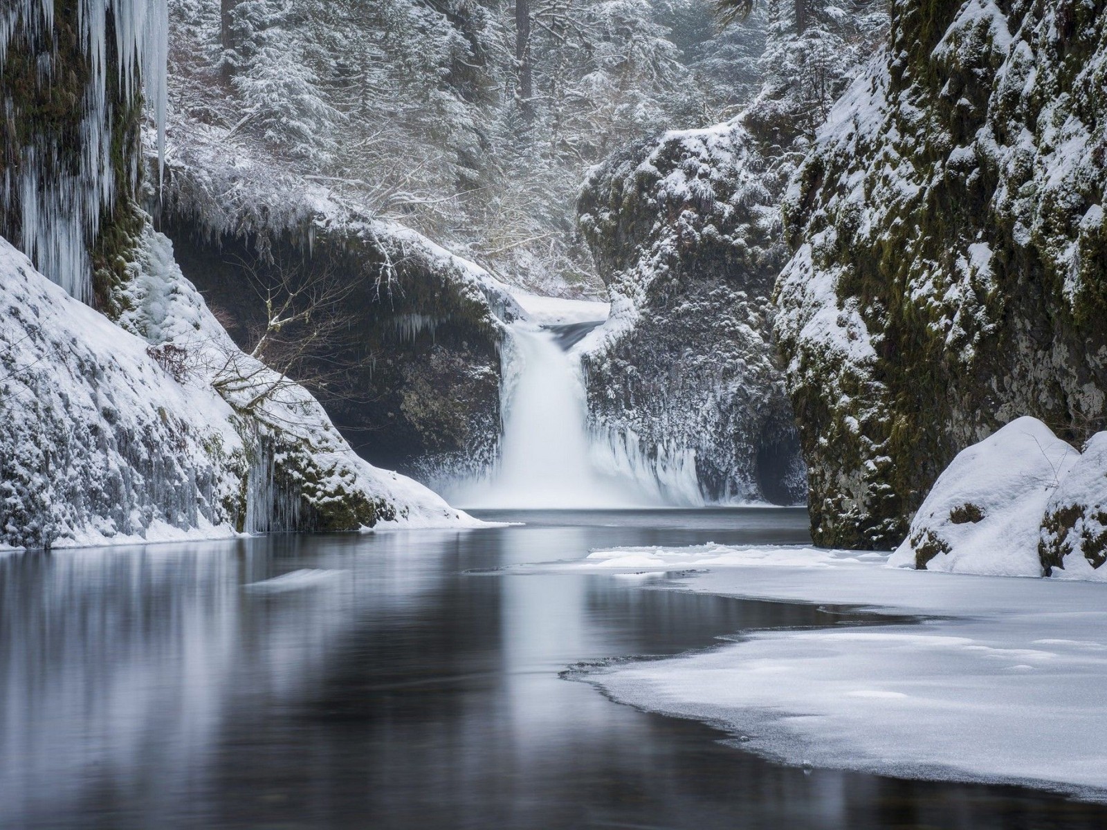 Wonderful Frozen Waterfall in Forest - 1600x1200