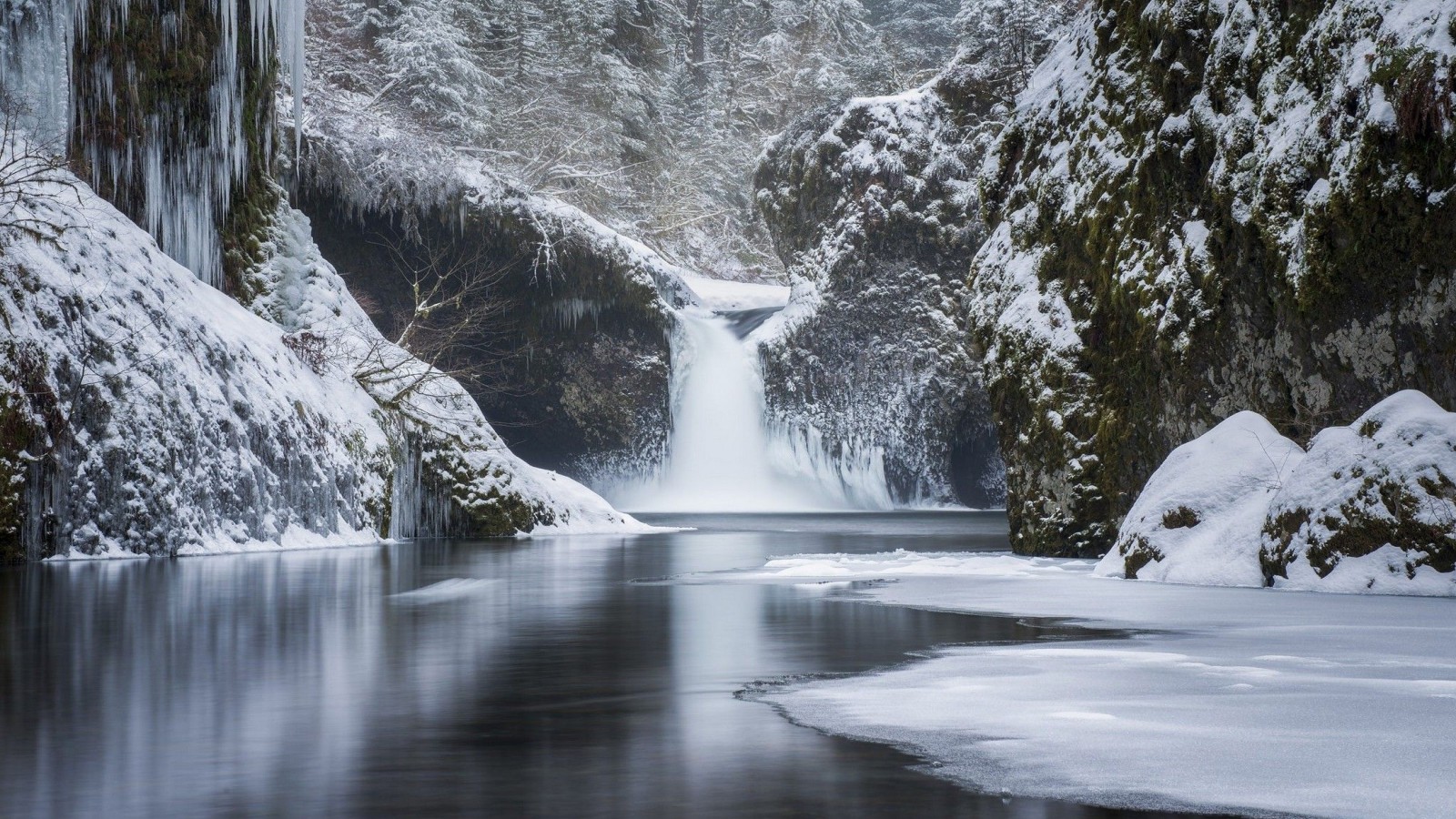 Wonderful Frozen Waterfall in Forest - 1600x900
