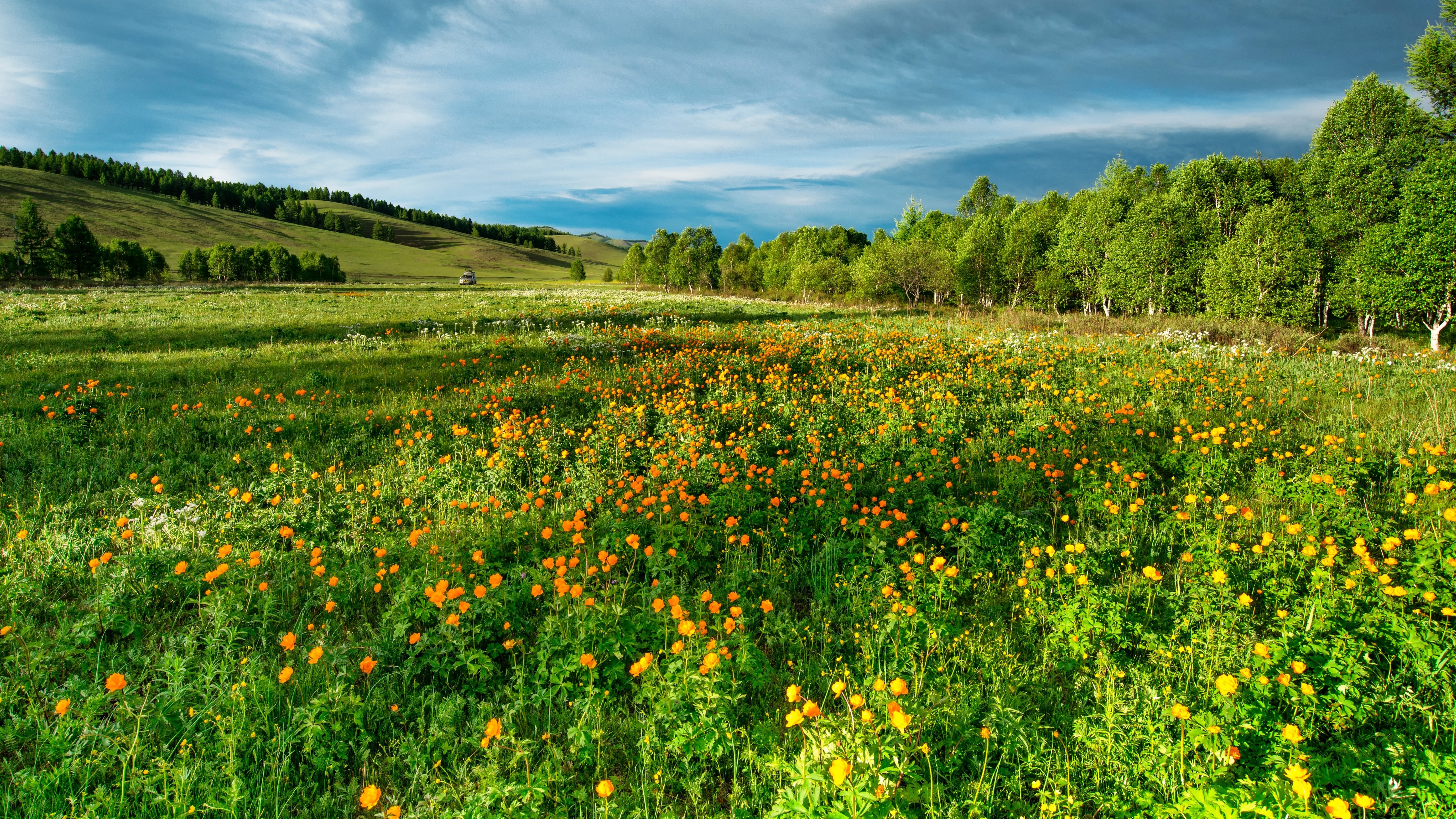 Wonderful Green Field and Forest - 5120x2880 5K UHD +