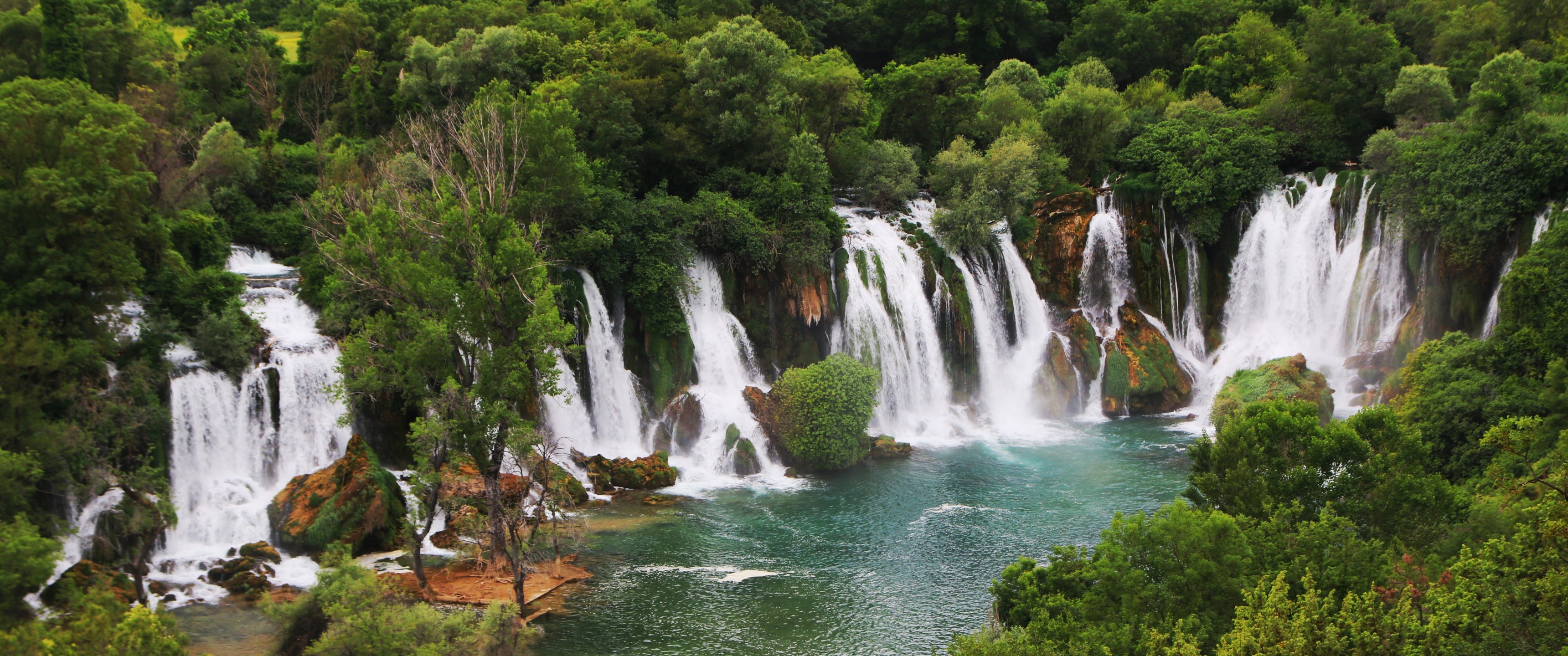 Wonderful Green Forest and Waterfall - 3440x1440 Ultra WQHD