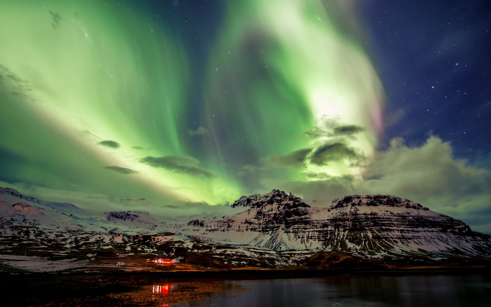 Wonderful Green Northern Lights Lake and Mountains - 1680x1050