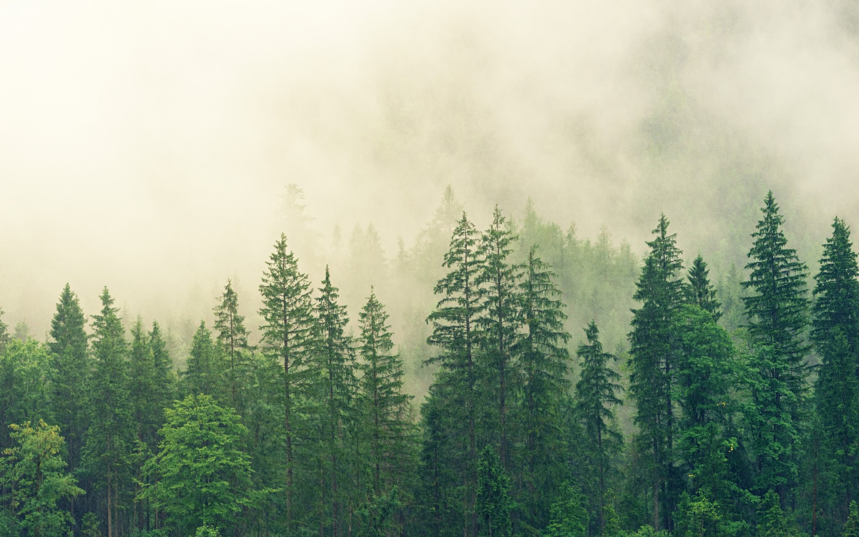 Wonderful Green Pine Forest and Fog - 1680x1050