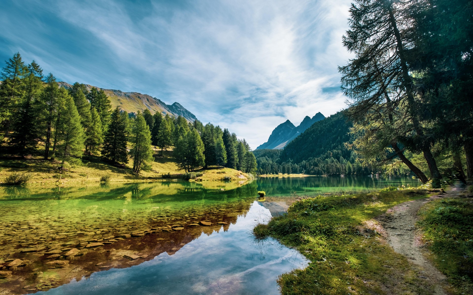 Wonderful Lake and Mountains with Green Forest - 1920x1200