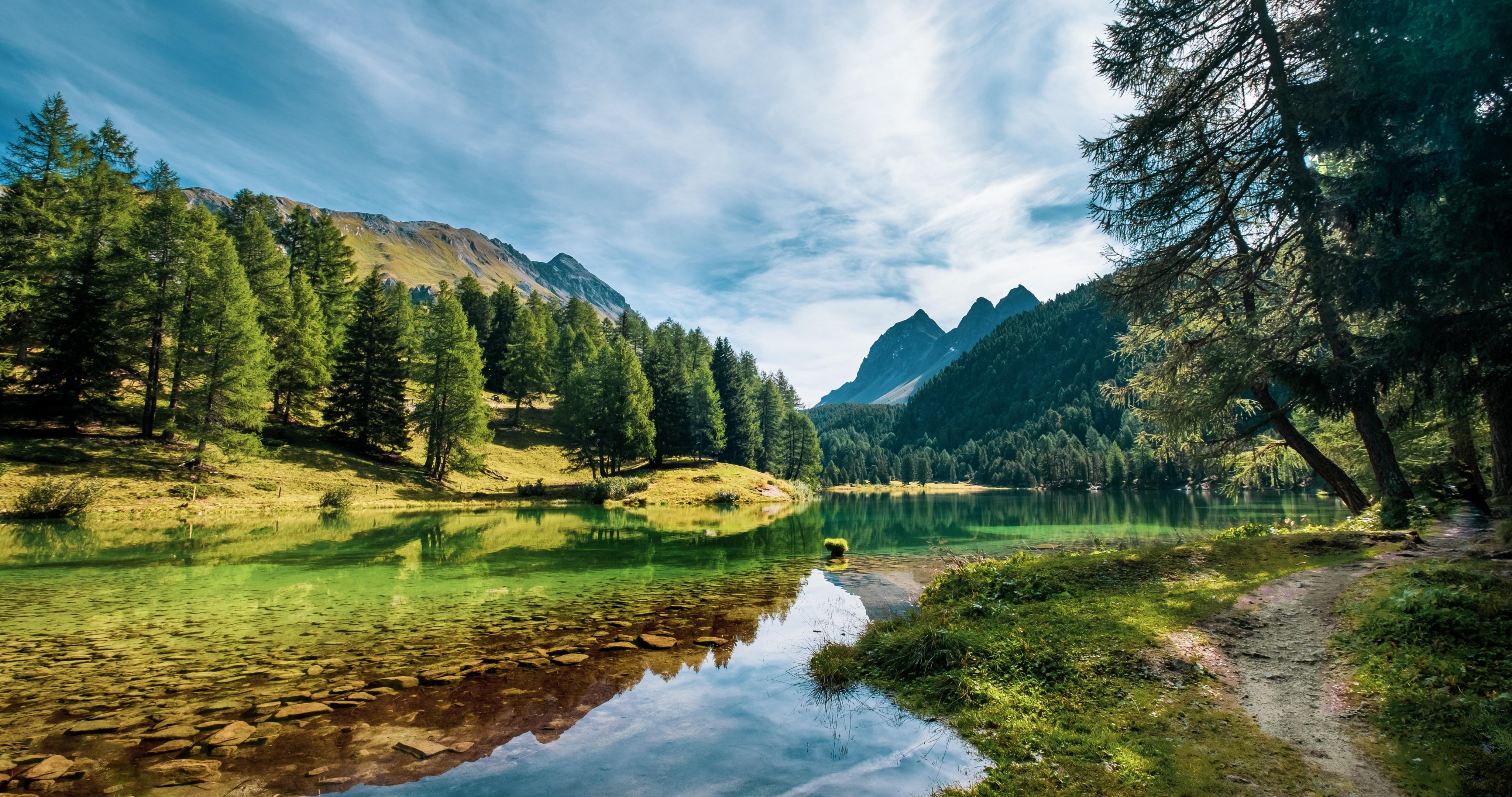Wonderful Lake and Mountains with Green Forest - 4096x2160 4K