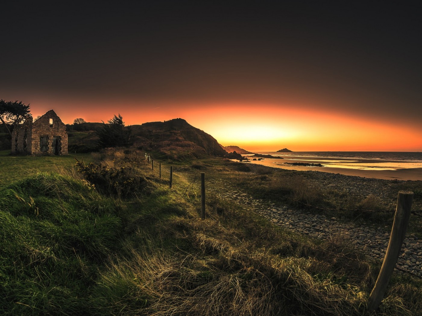 Wonderful Orange Sunset and Single House on Coast - 1400x1050
