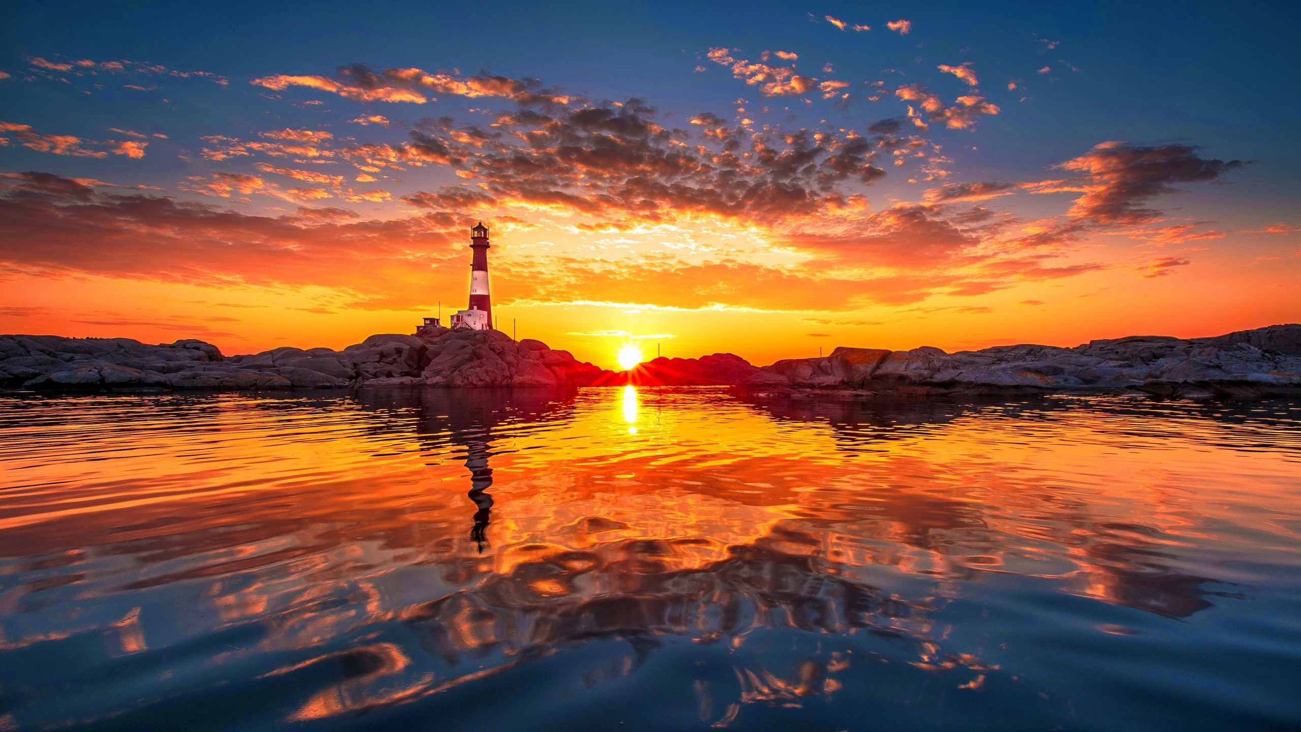 Wonderful Orange Sunset and Waves on Sea - 2560x1440