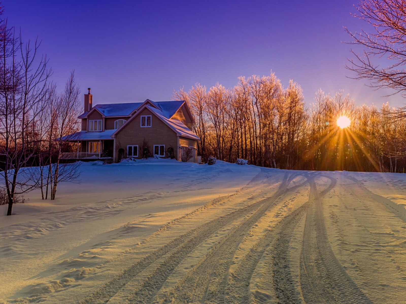 Wonderful Orange Sunset in Winter Forest - 1600x1200
