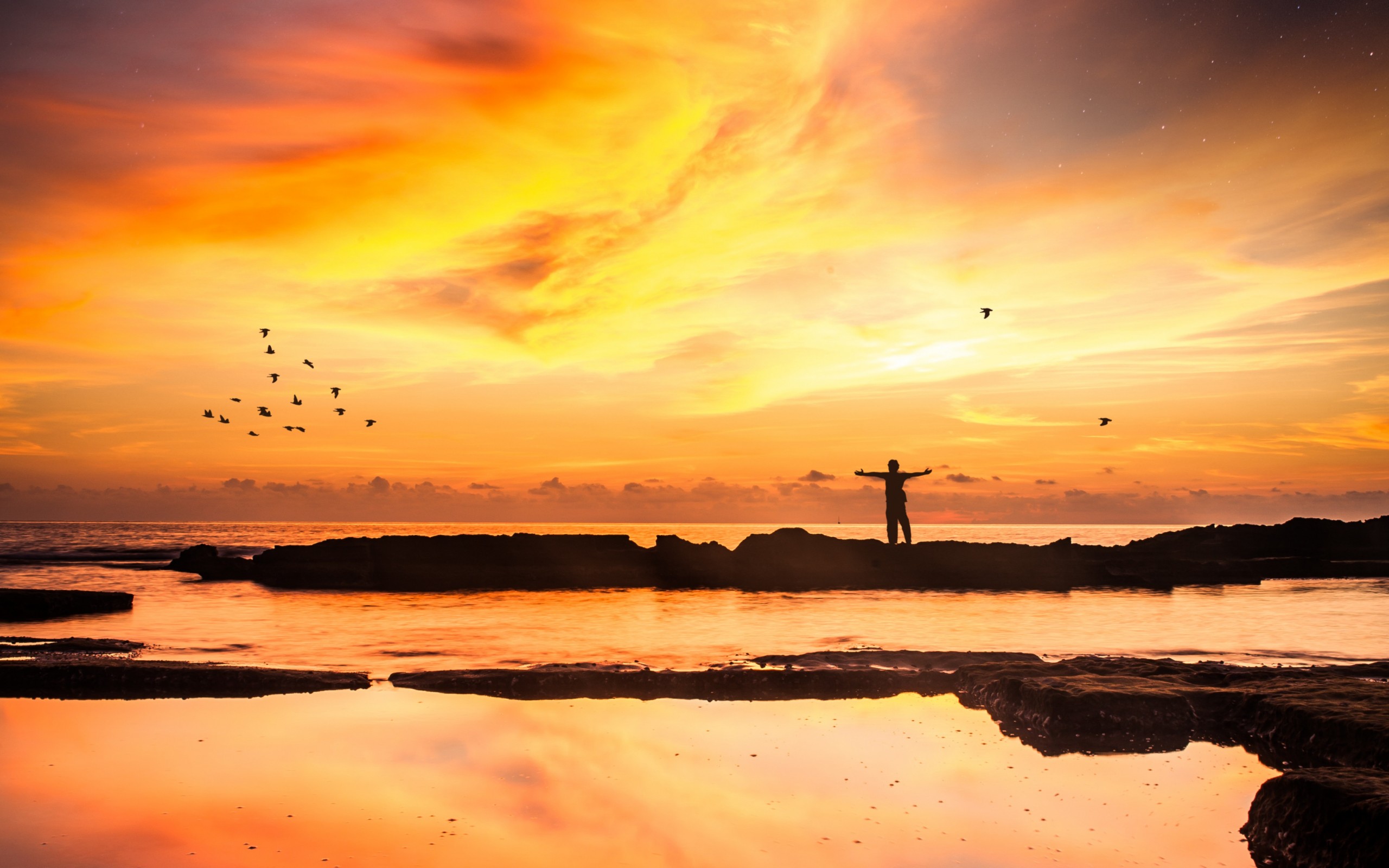 Wonderful Orange Sunset on Coast - 2560x1600